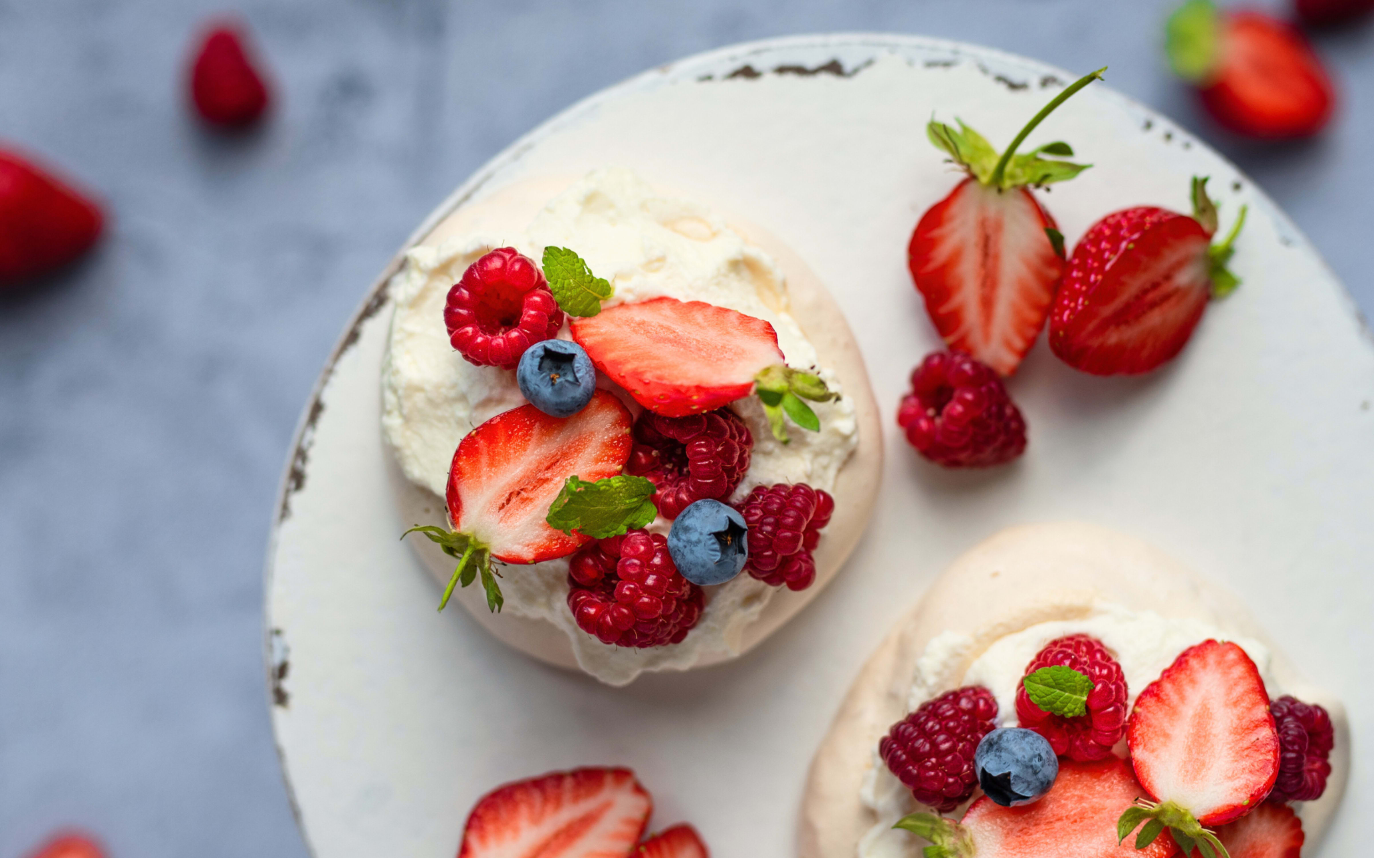 Pavlova med ferske bær og sitronmelisse