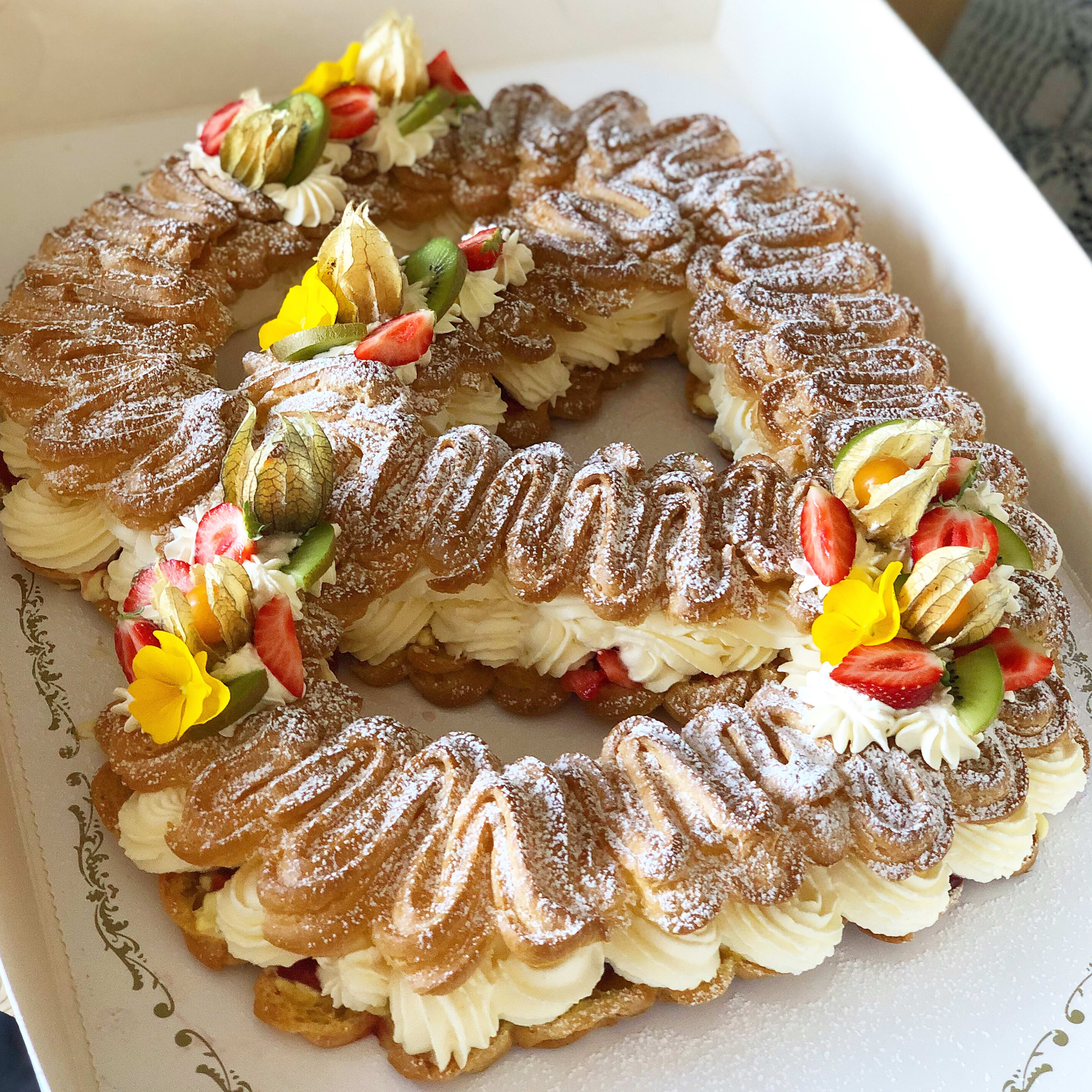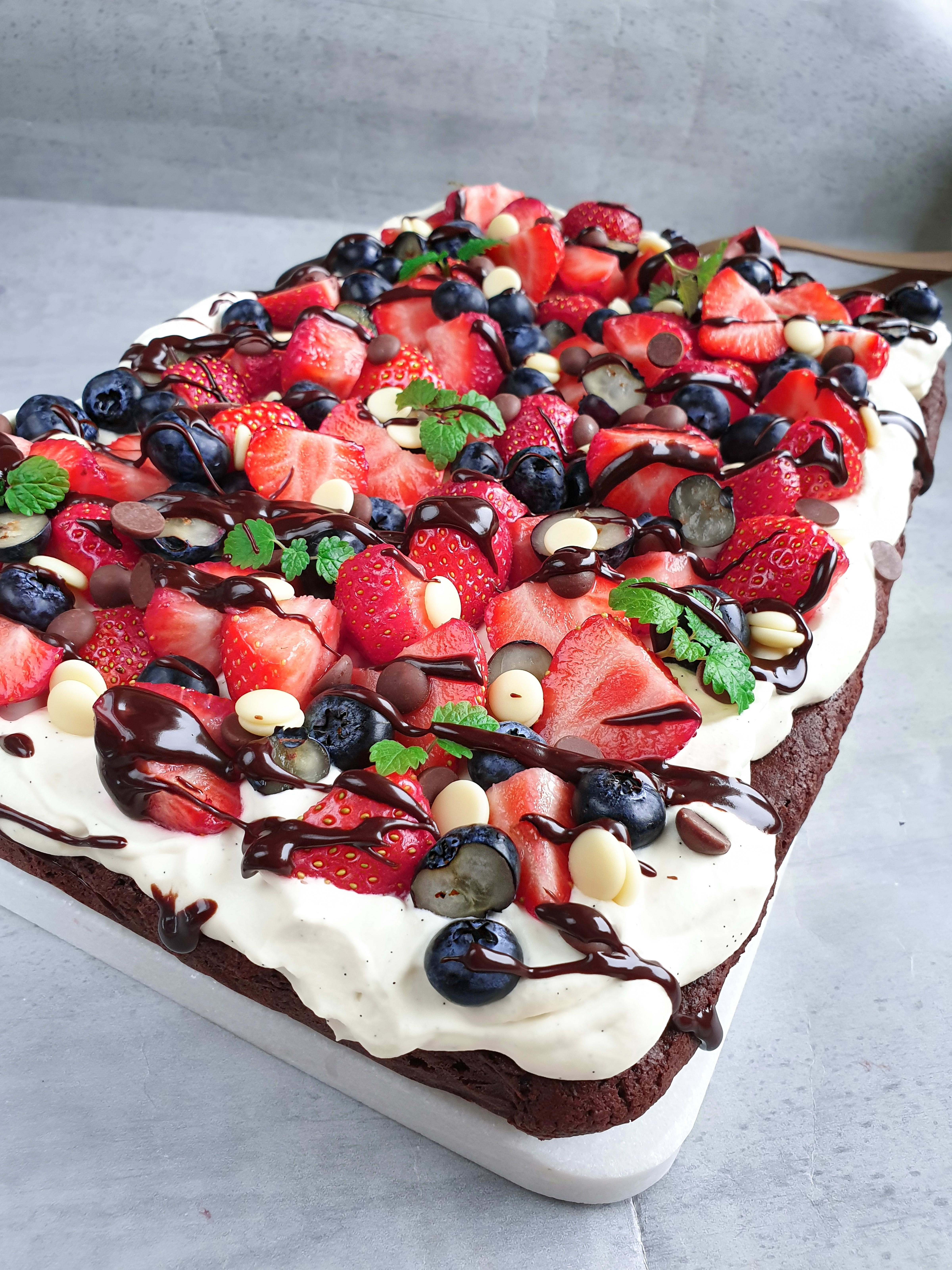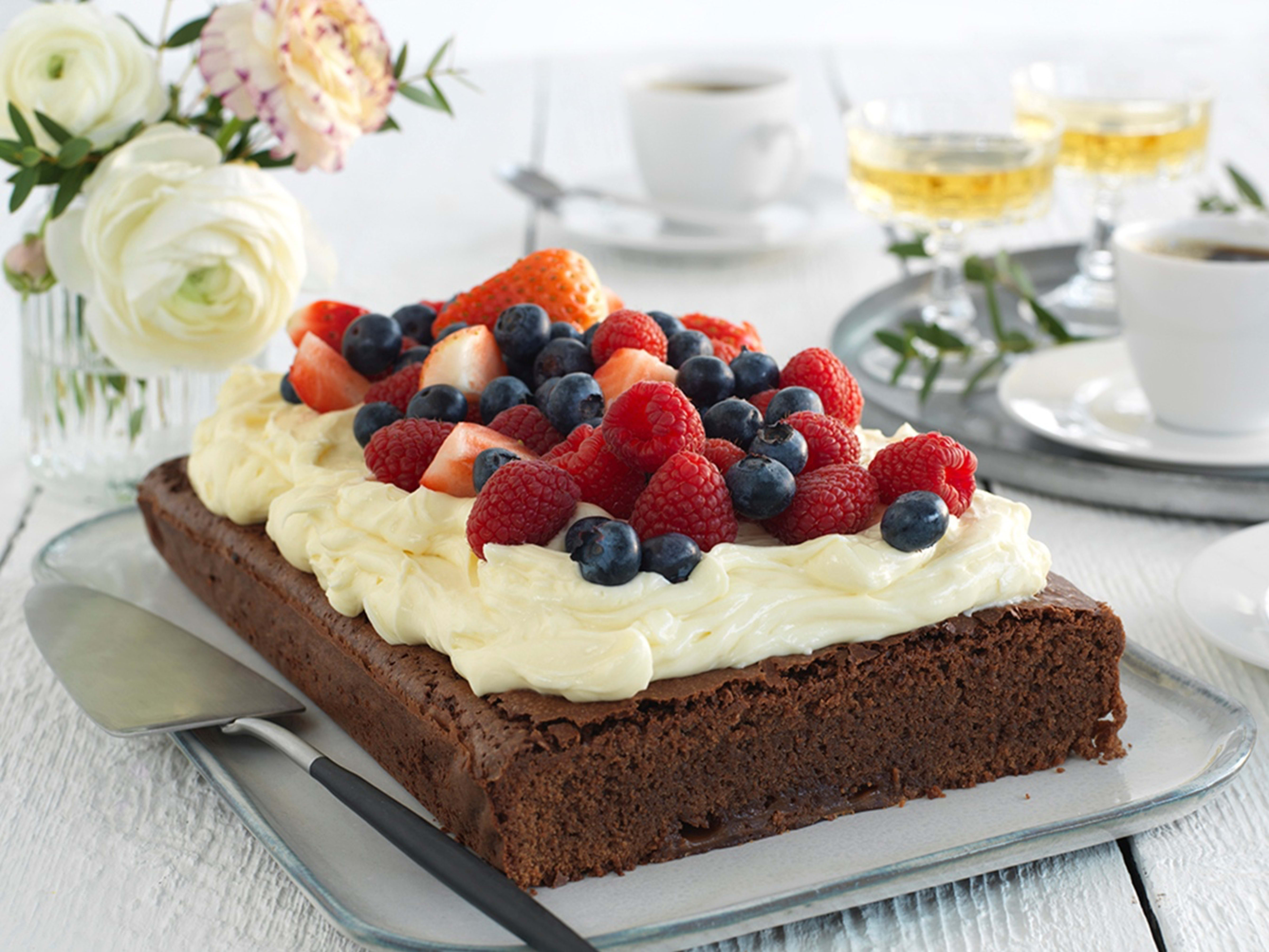 Sjokoladekake med vaniljekrem og bær