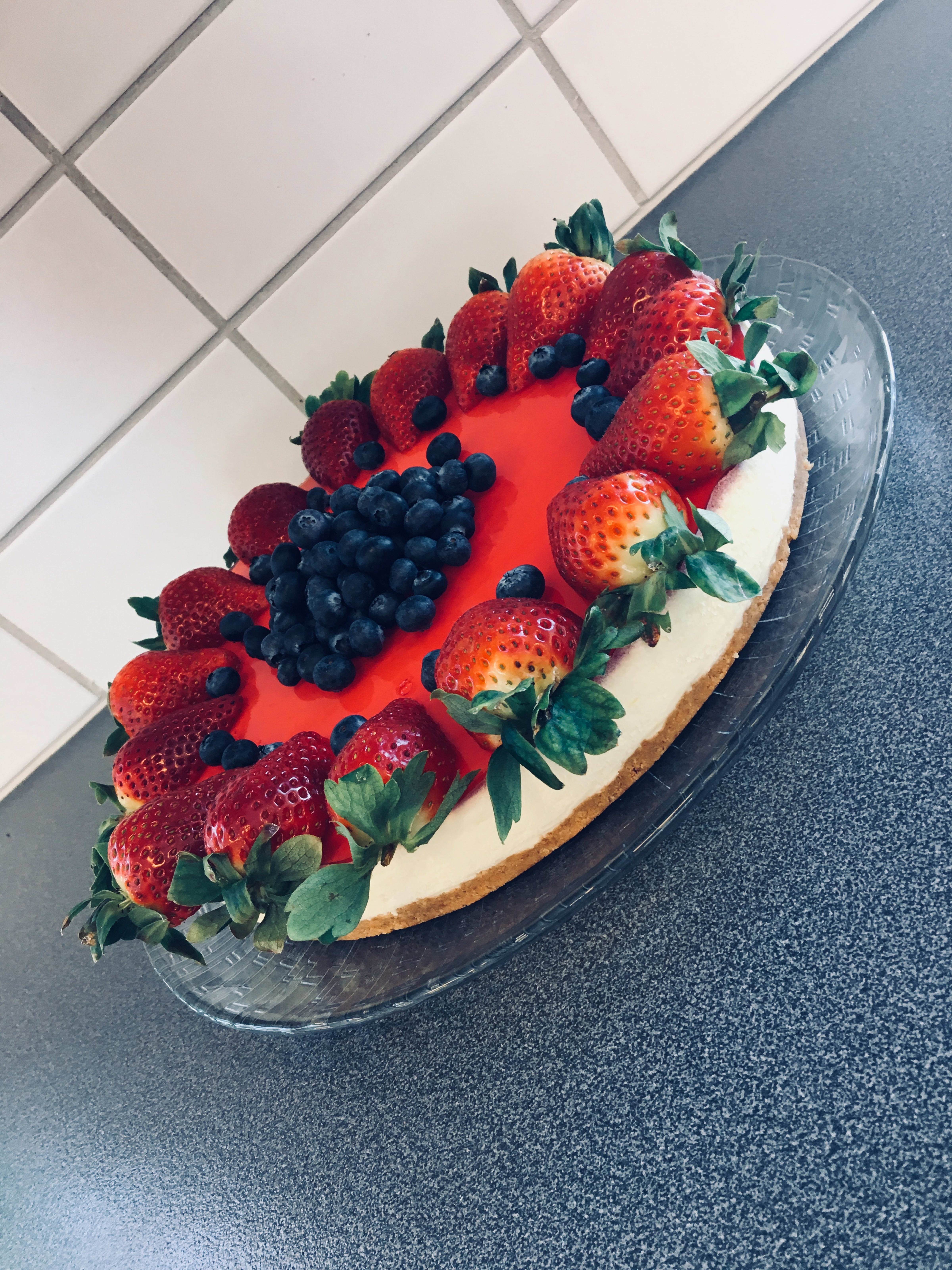 Ostekake med friske jordbær