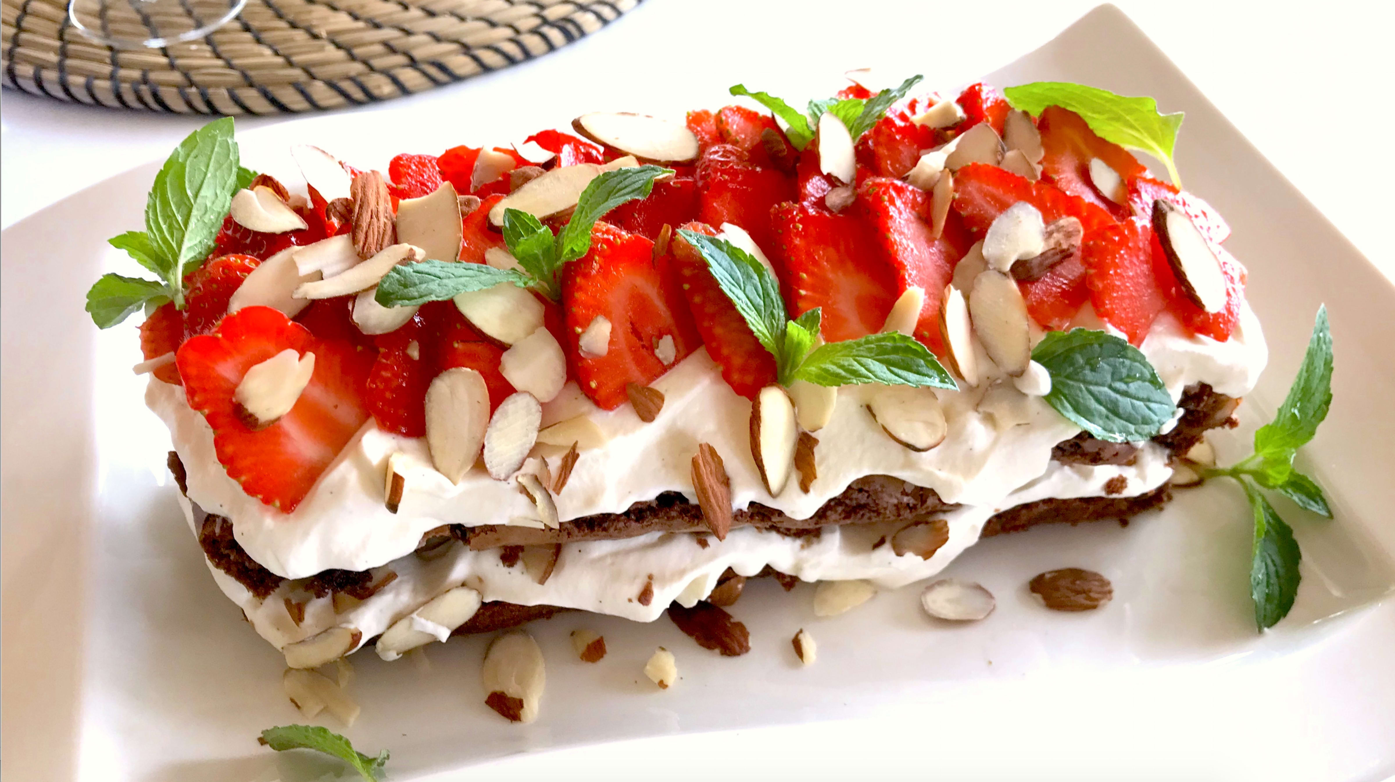 Sjokoladekake med smash og friske jordbær