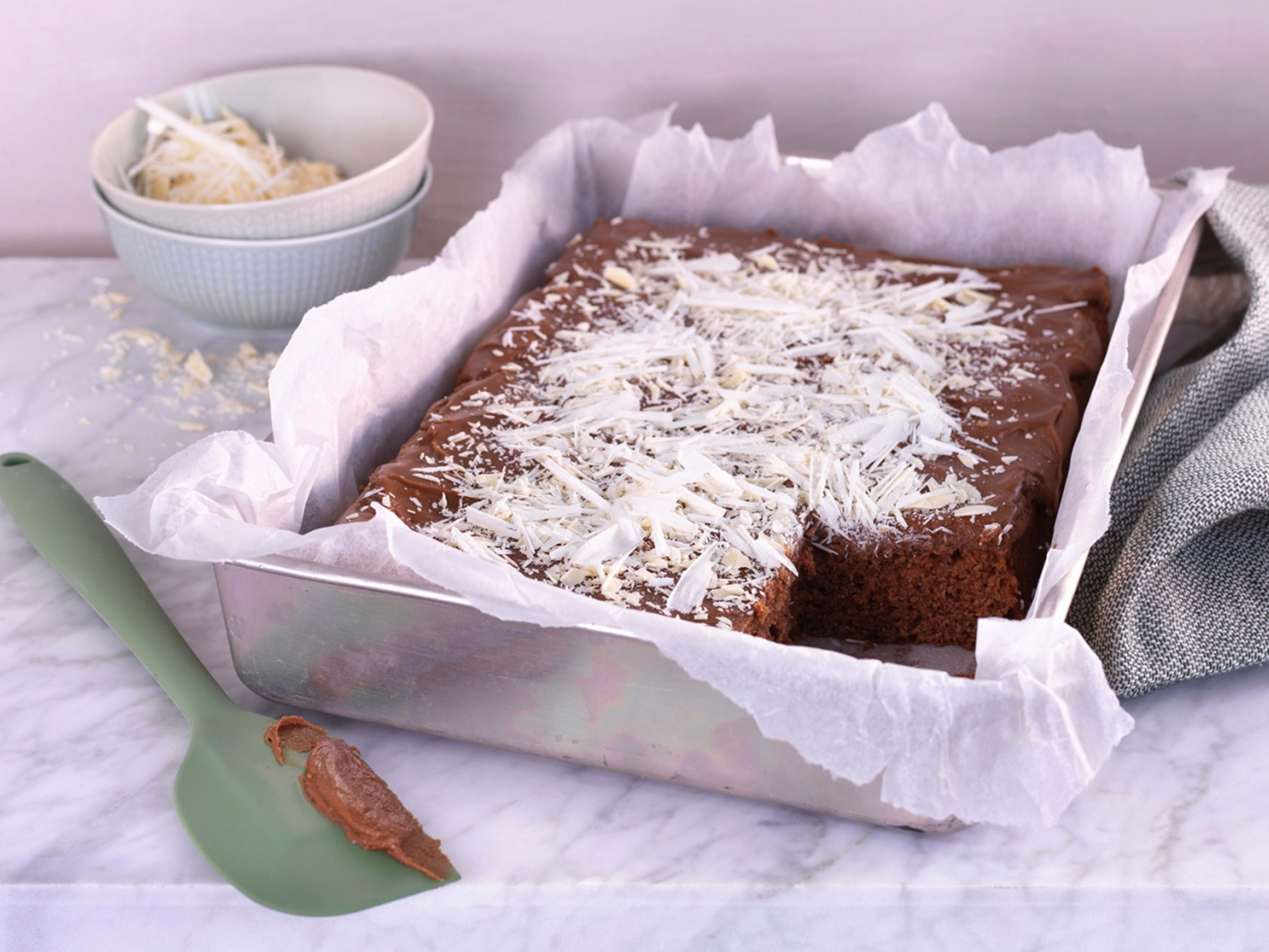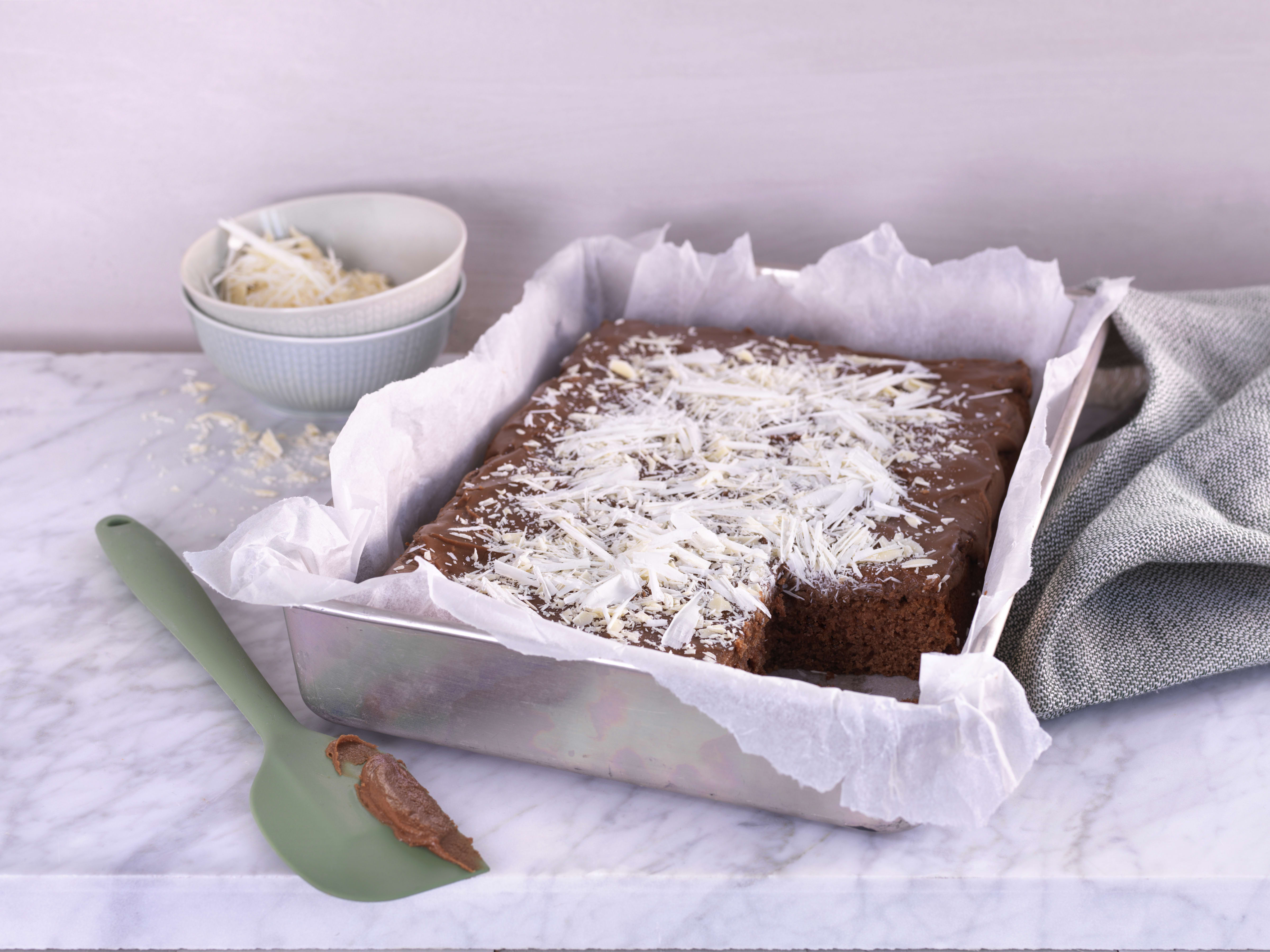 Saftig langpanne sjokoladekake med et hint av kaffe.