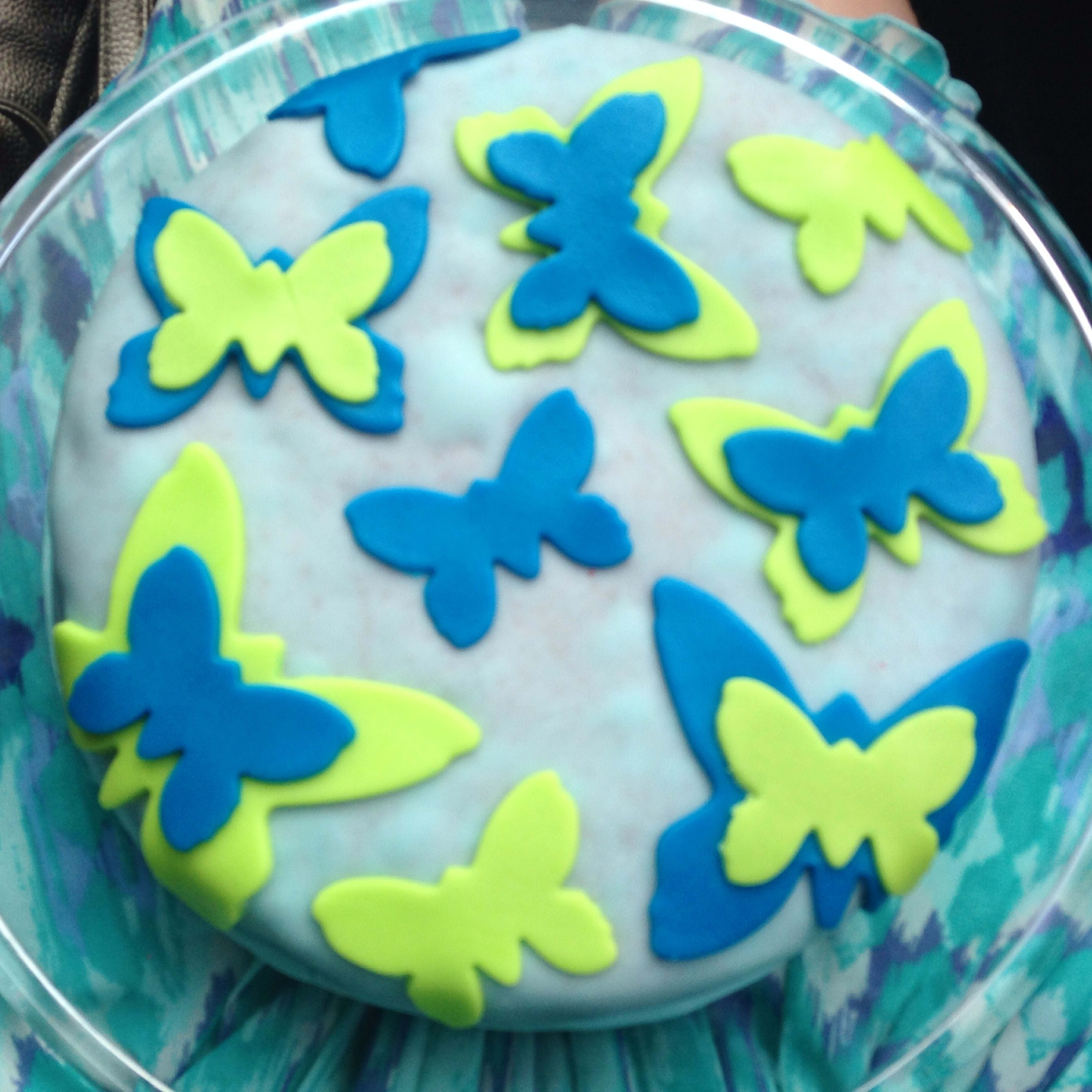 Sommerfuglkake med sukkerbrød og jordbærmousse