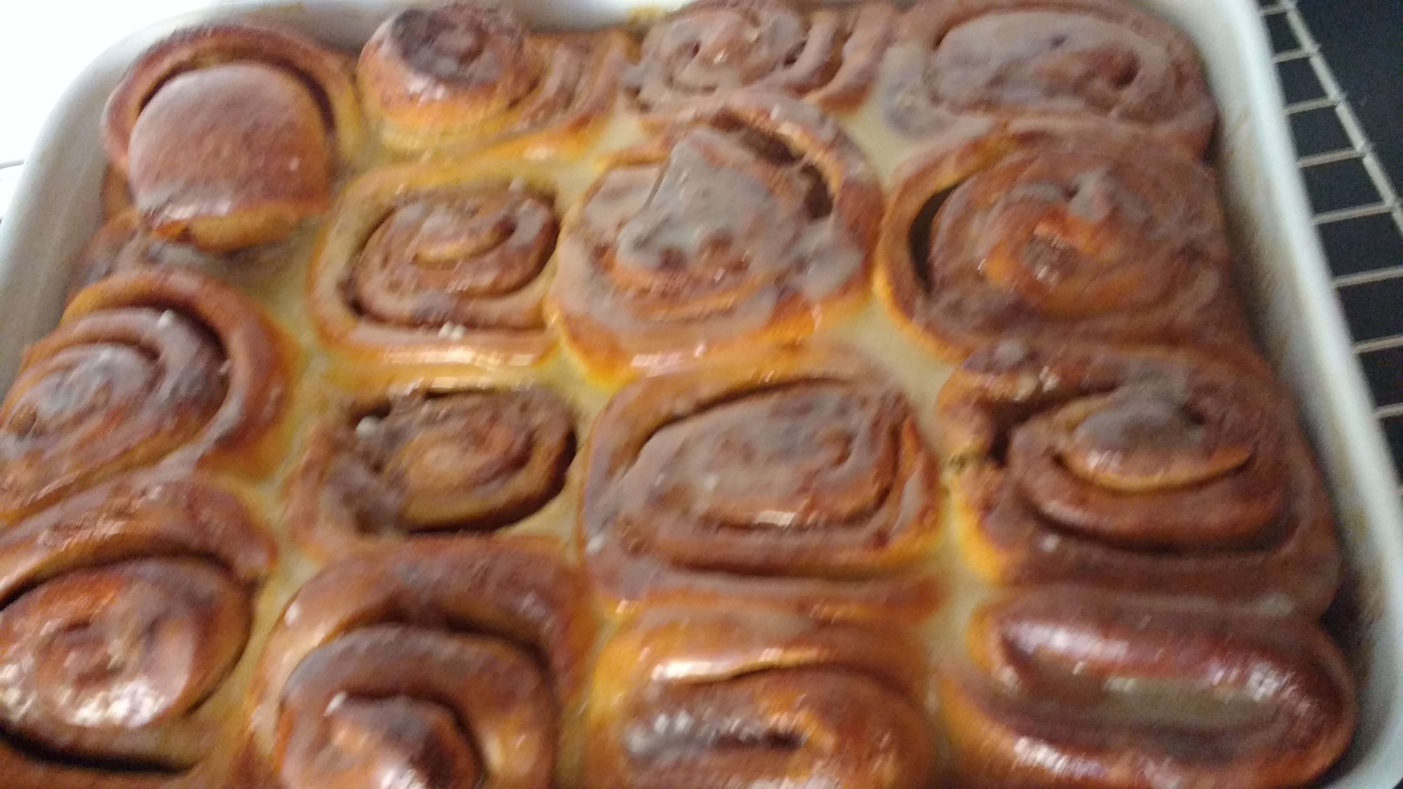 11. Legg cinnamon roll bollene i formen. De skal ligge flatt, ved siden av hverandre. La det være litt plass mellom hver rull, så de har plass til å vokse.