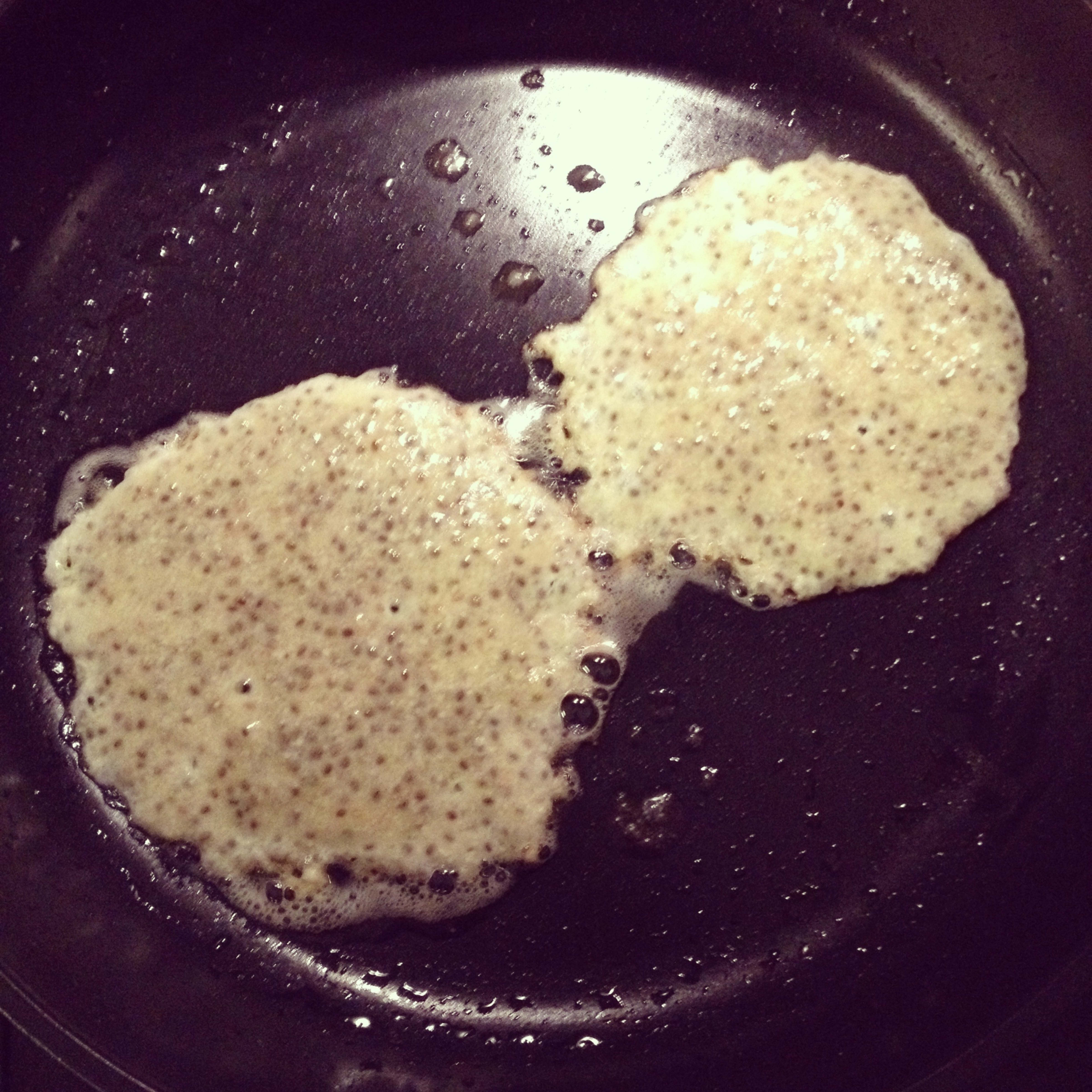 4) Stekes i godt med Bremykt Steke og Bake på middels varme. Chia frøene gjør deigen litt vanskeligere å bearbeide så det er viktig at du bruker nok Bremykt og gir stekeprosessen litt lenger tid enn vanlige pletter.