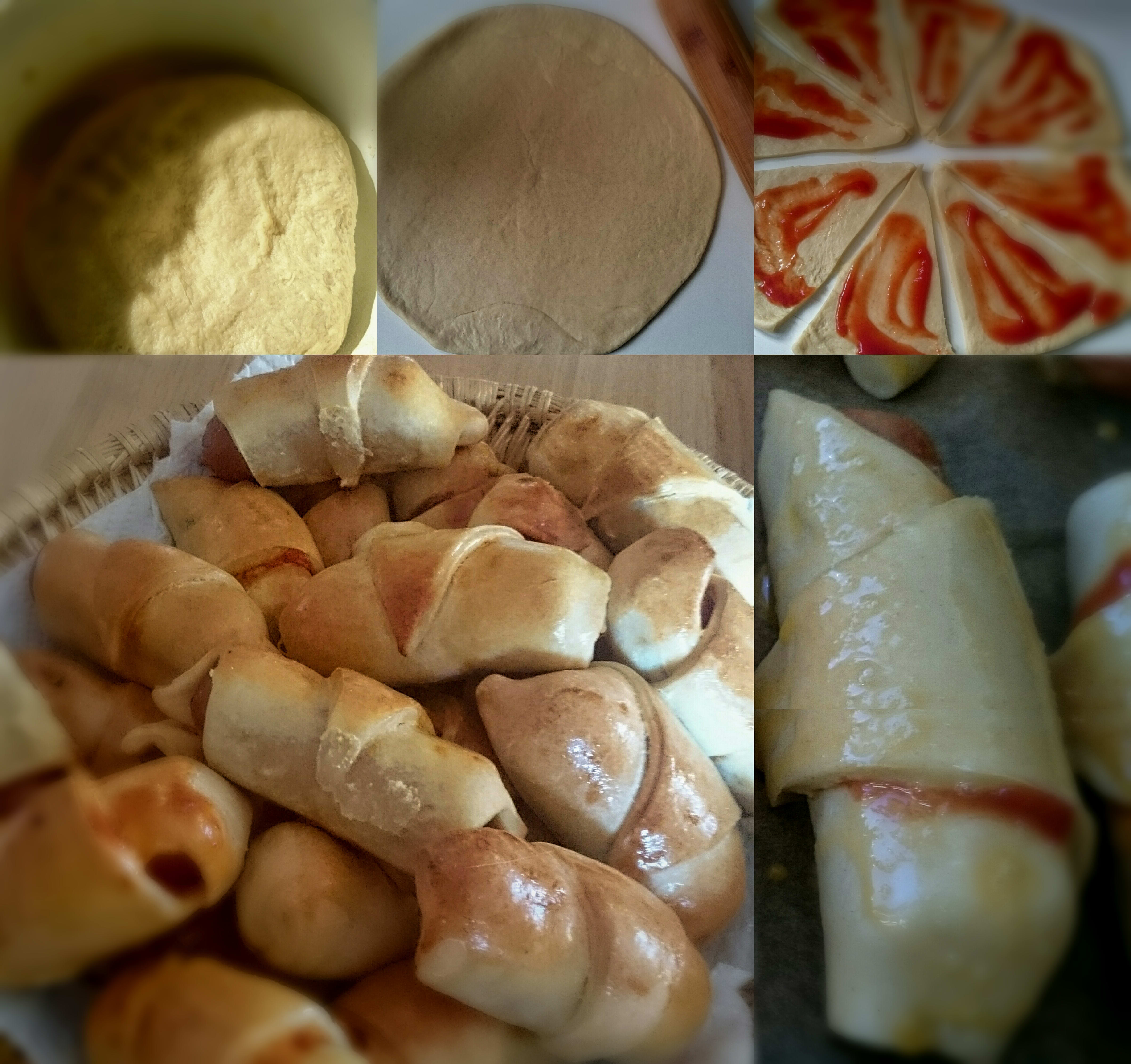 (om man vil kan man pakke pølsen helt inn i deigen, men er ikke farligt om man ser pølsen stikke ut fra deigen)
