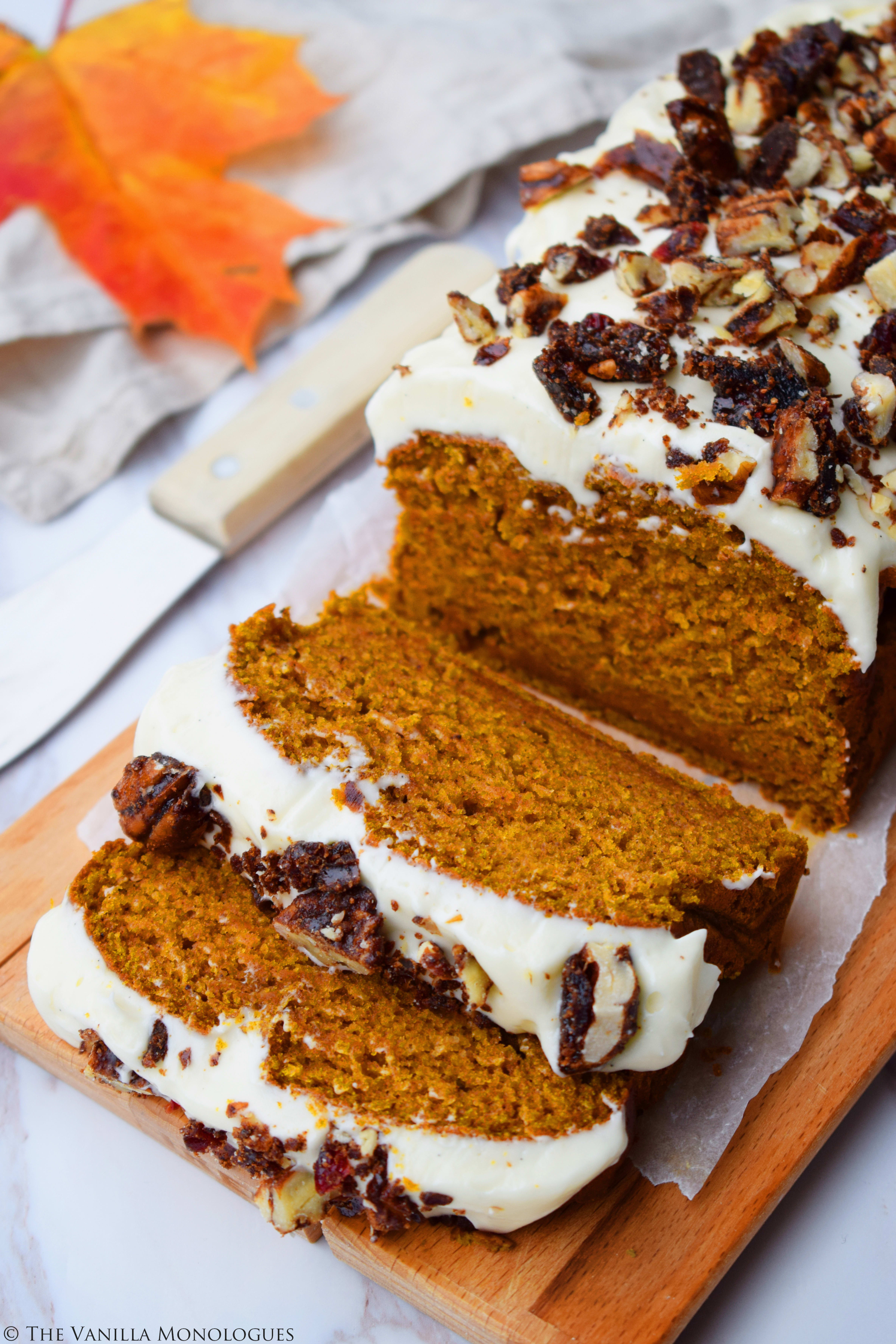 Mål opp hvitt sukker, brunt sukker, vanilje og gresskarpuré i en stor bolle og visp sammen. Pisk inn eggene og smeltet Bremykt.