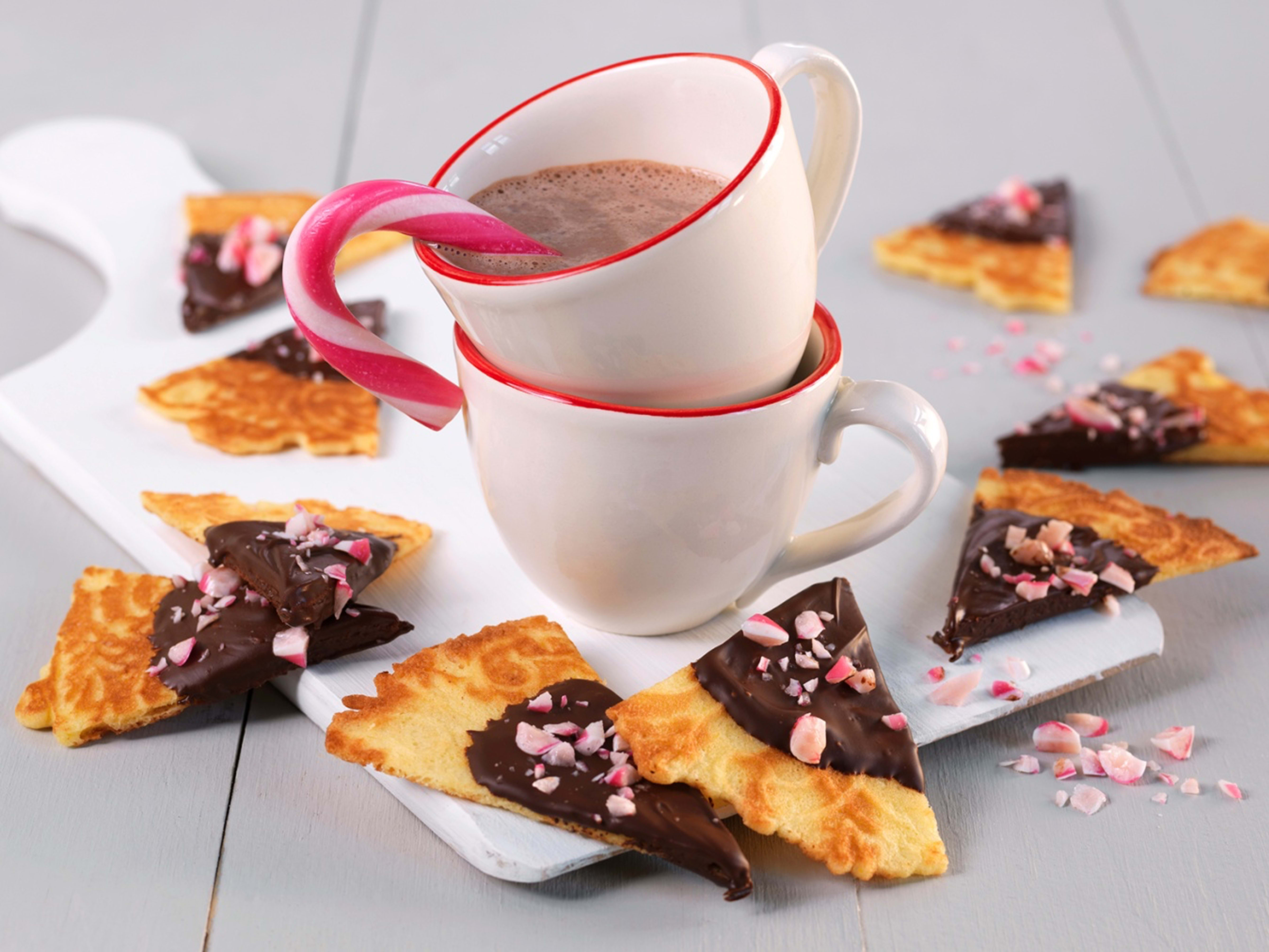 Dypp i smeltet sjokolade og dryss med knust polkagris.
