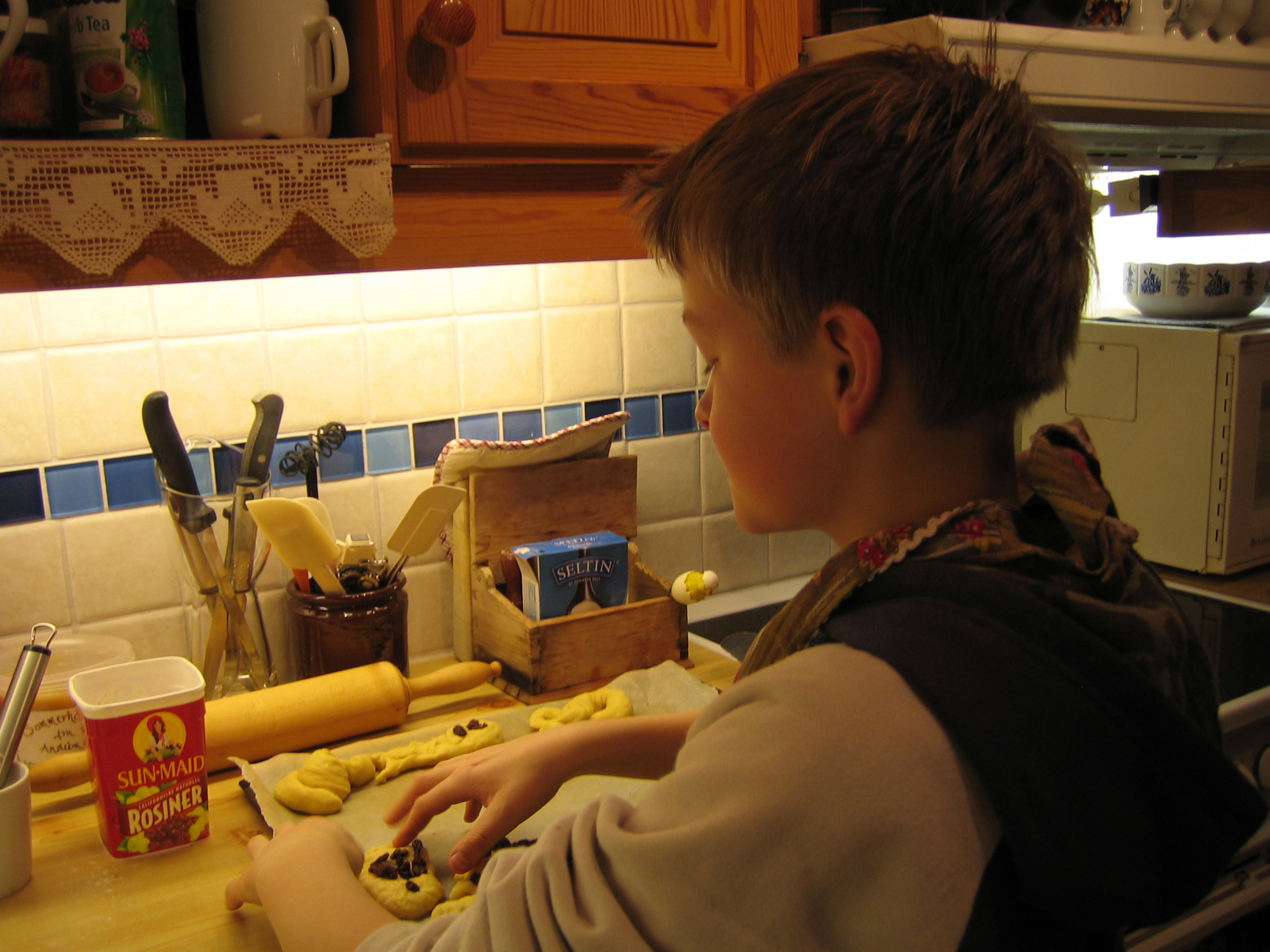PS! Rosiner som ikke ” vil være med” i bollene, kan spises etter hvert