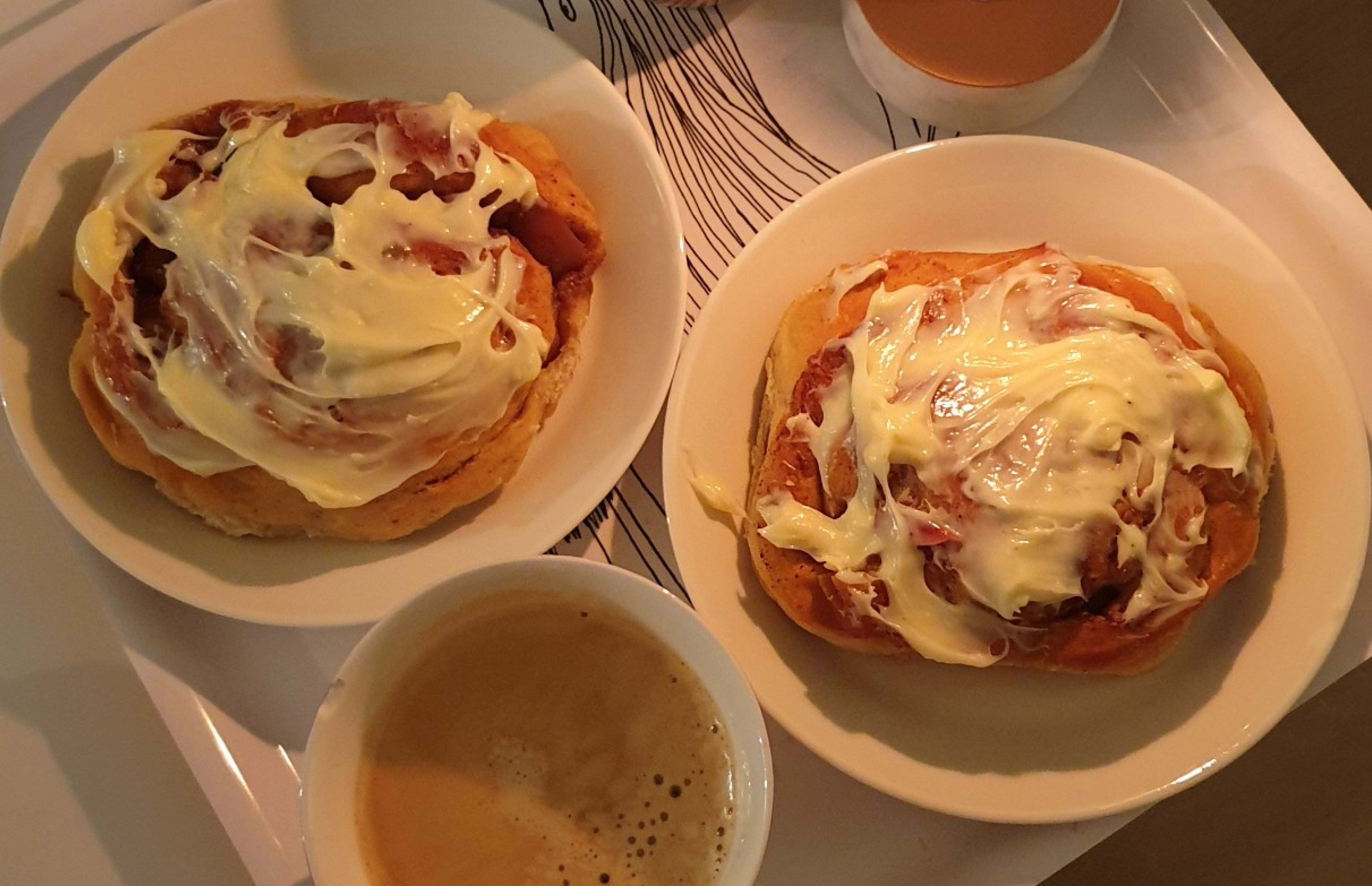 Varm melk og yoghurt til ca 40 grader, bland det sammen med det tørre. Kna inn bremykt til slutt. Elt til det er en samlet deig, ikke lengre. Forhev ca 40 min. Kjevl ut en leiv, smør med Bremykt og dryss på så mye sukker og kanel som du ønsker. Strø finhakkede eplebiter over leiven før du ruller den sammen og deler opp til kanelsnurrer. La dem heve til ca dobbel størrelse. Stekes på 220C i ca 12 min