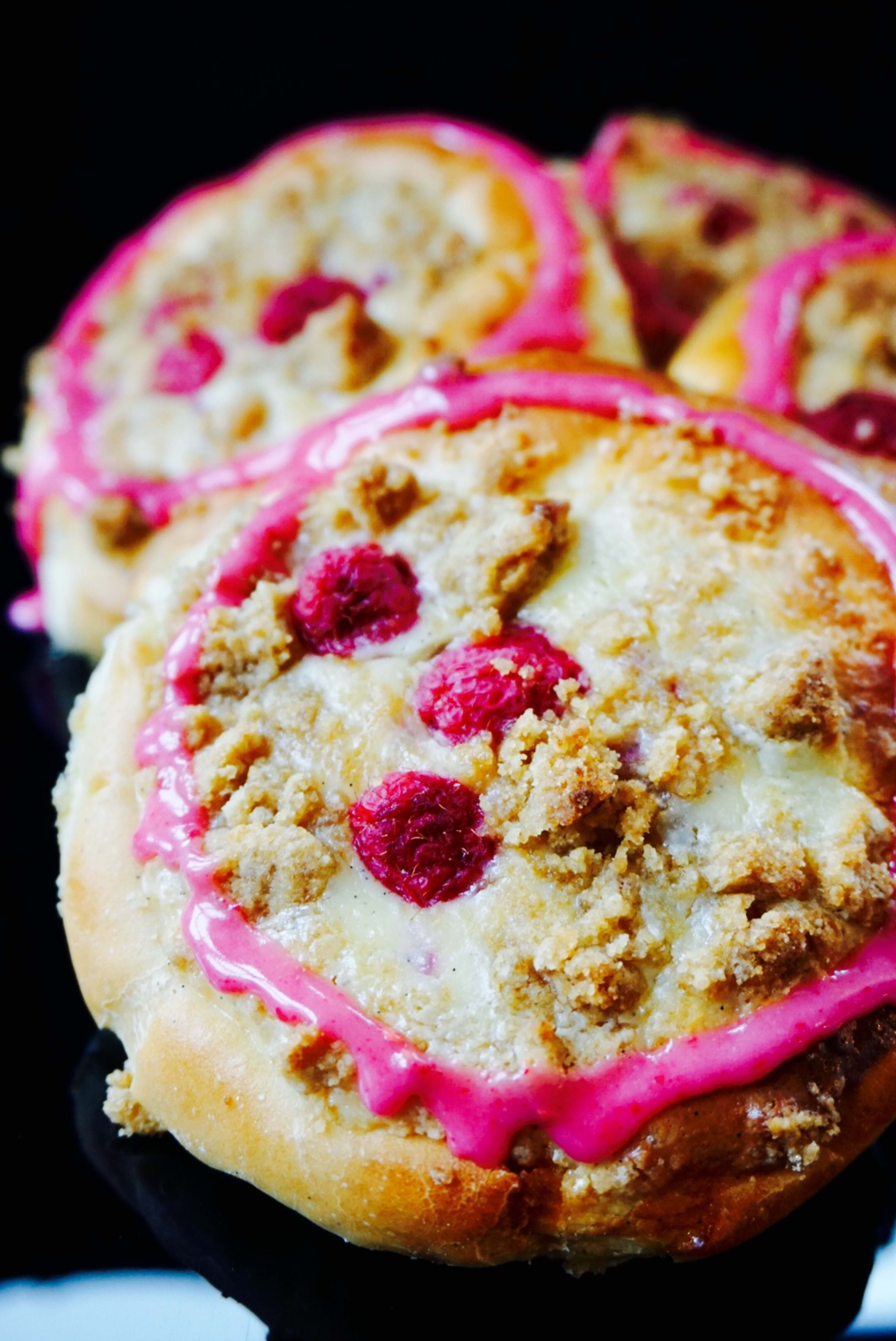 Jeg brukte også friske bringebær på toppen. 3 stk på hver bolle.