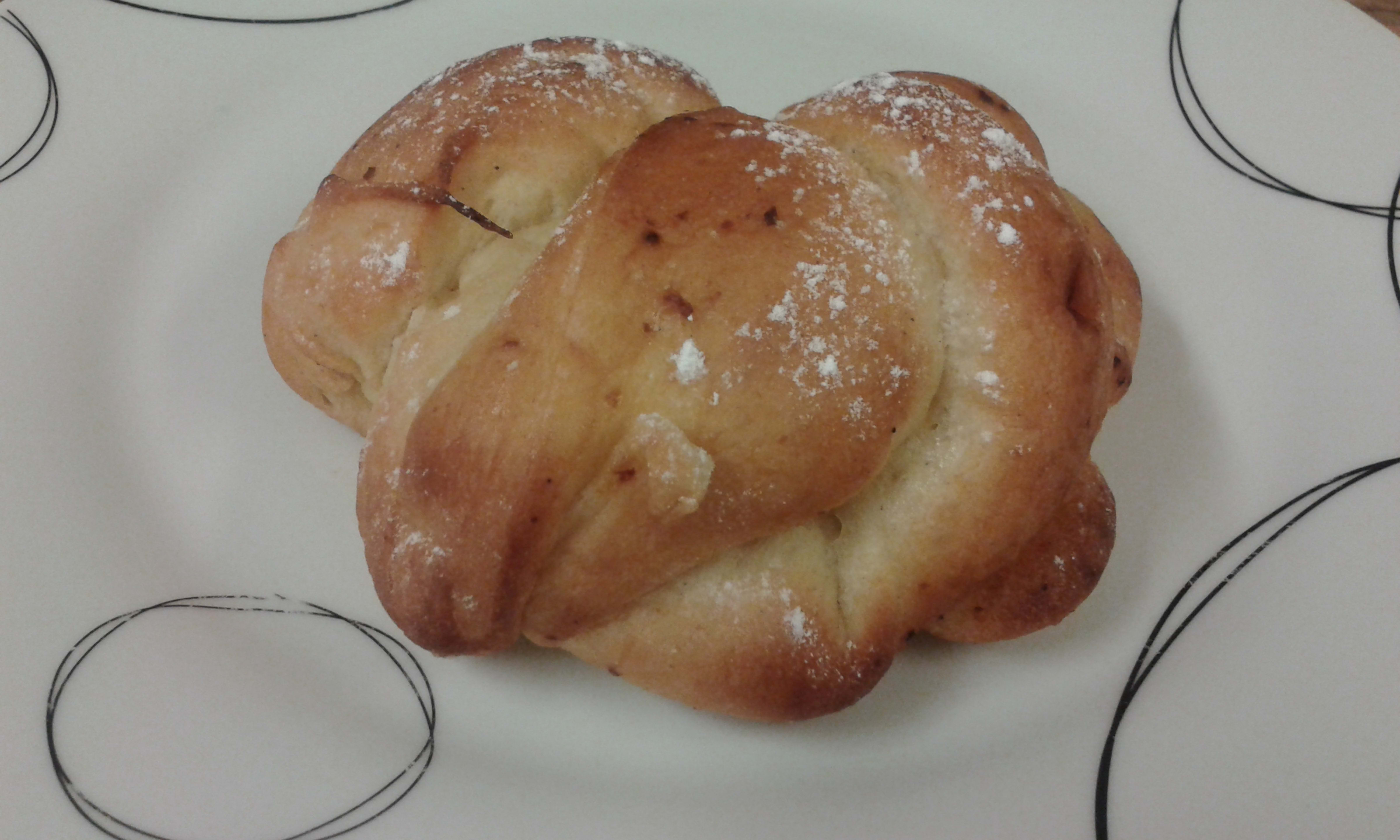 Smør et lag lemon curd på hele firkanten. Rull deigen sammen. Del rullen opp i snurrer. Du kan også lage fletter eller forme de slik du vil. Bruk fantasien. Gjør det samne med den andre halvdelen. Settes på bakepapir-kledd stekeplate og heves i 30-45 min. Smør de så med egg og strø perlesukker over.
