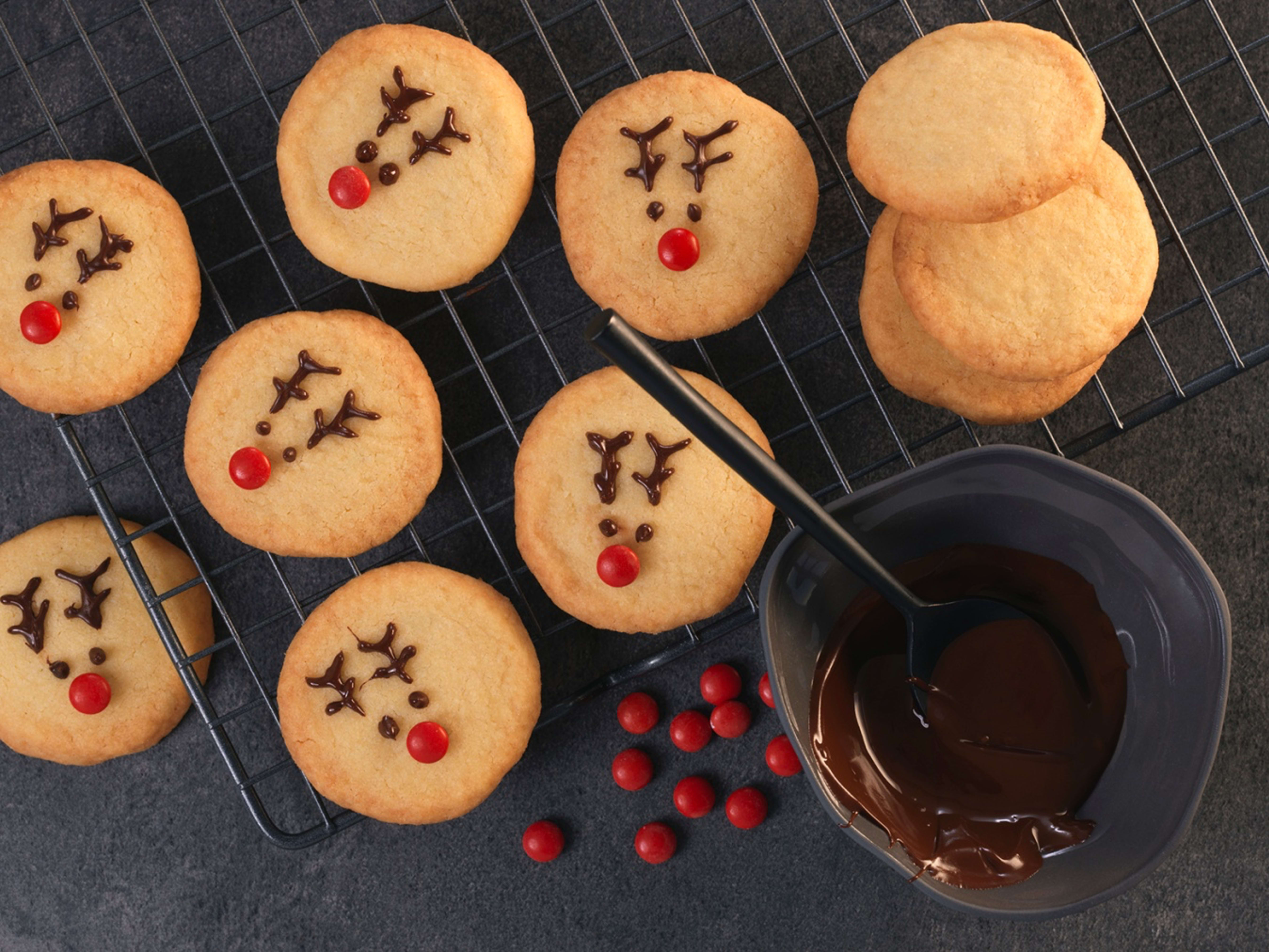 Smelt sjokolade over vannbad, ha det i en sprøytepose med tynn tipp, eller i et kremmerhus som du lager av bakepapir. Sprøyt mønster, fest nesa med litt sjokolade.