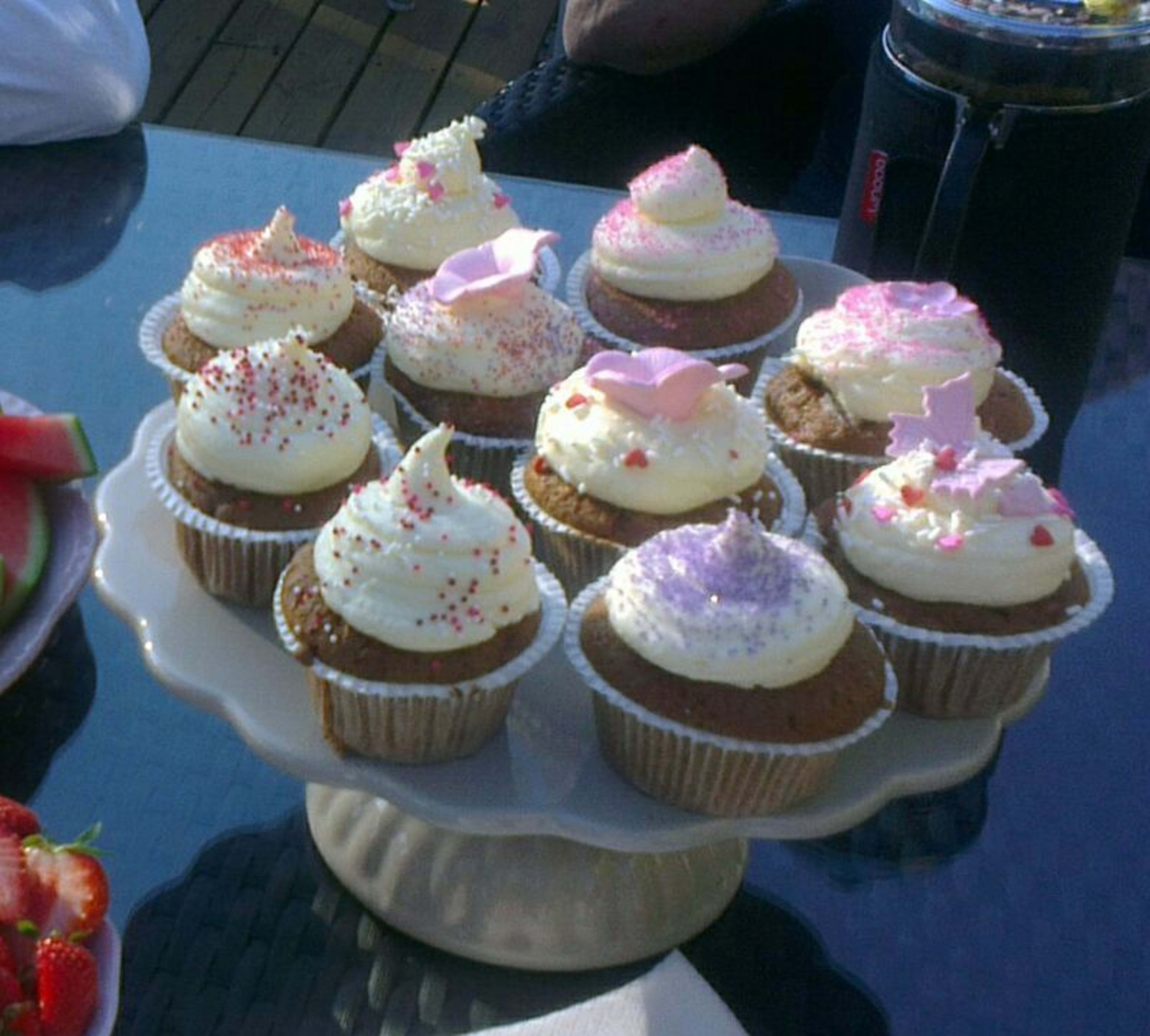 Når cupcakes er avkjølte kan du sprøyte kremen på og evt pynte de med strøssel e.l.
