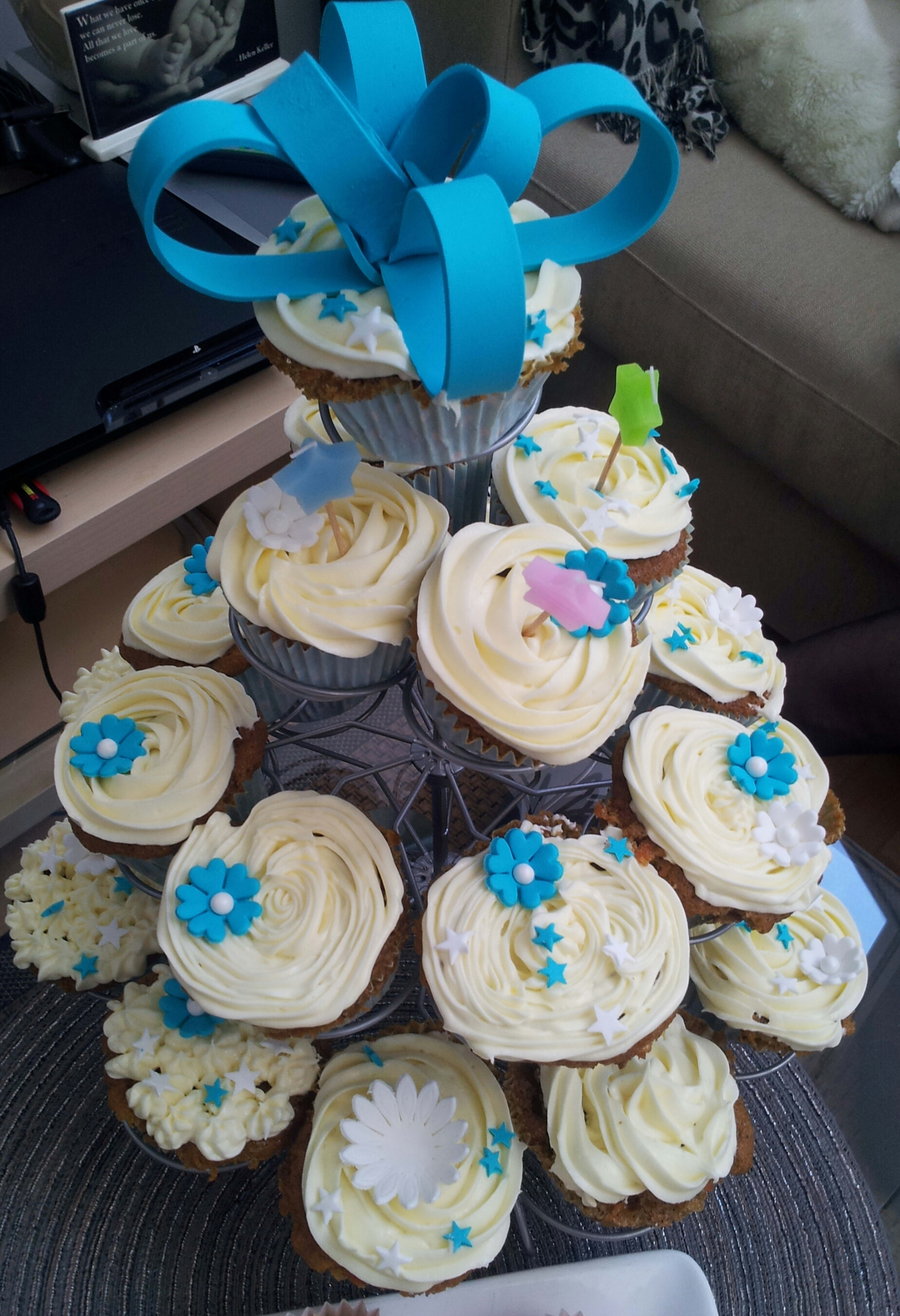 Cupcakesene blir ekstra saftig om du rasper halvparten av gulrøttene fint, og halvparten grov. Røra skal være ganske rennende. Denne oppskriften passer også fint til ei langpanne. Cupcakesene kan godt fryses, men holder seg fint noen dager i kjøleskap. Den blir faktisk saftigere jo lengre den står.