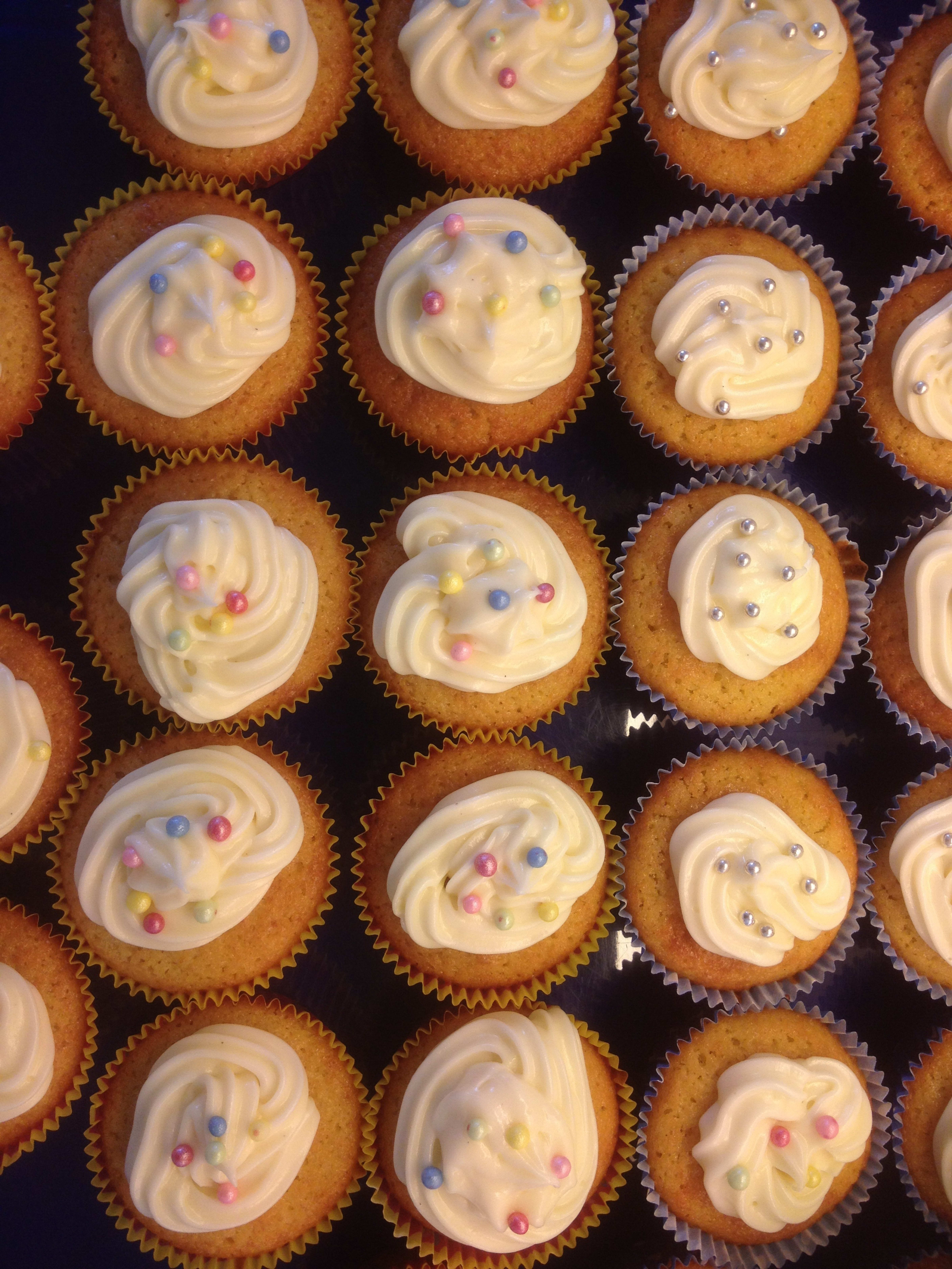 Fyll muffinsformene halvfulle.