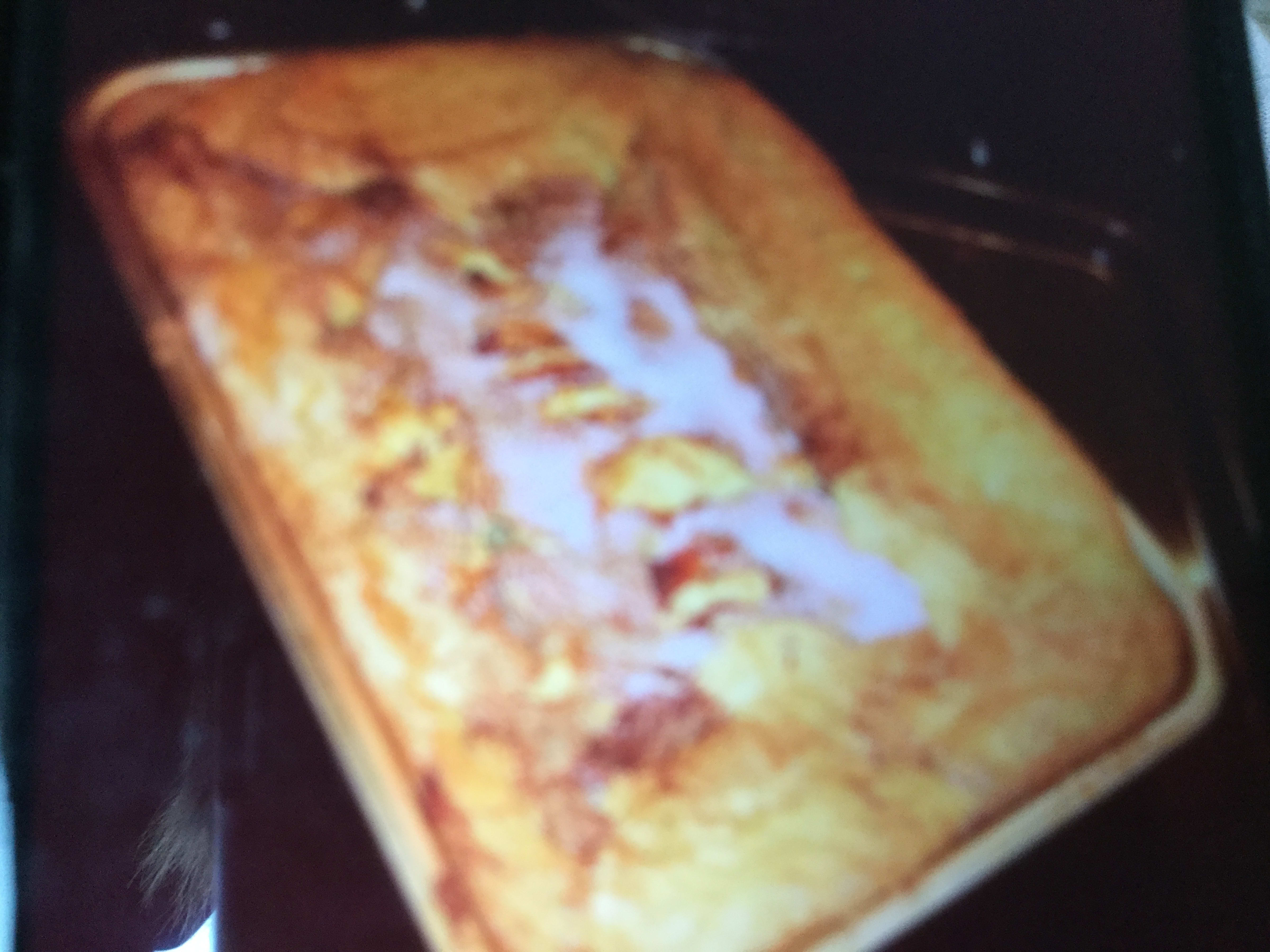Visp egg og sukker hvitt. Tilsett så smeltet Brelett, og mel, bakepulver og vaniljesukker. Hell alt i stor form med bakepapir.
