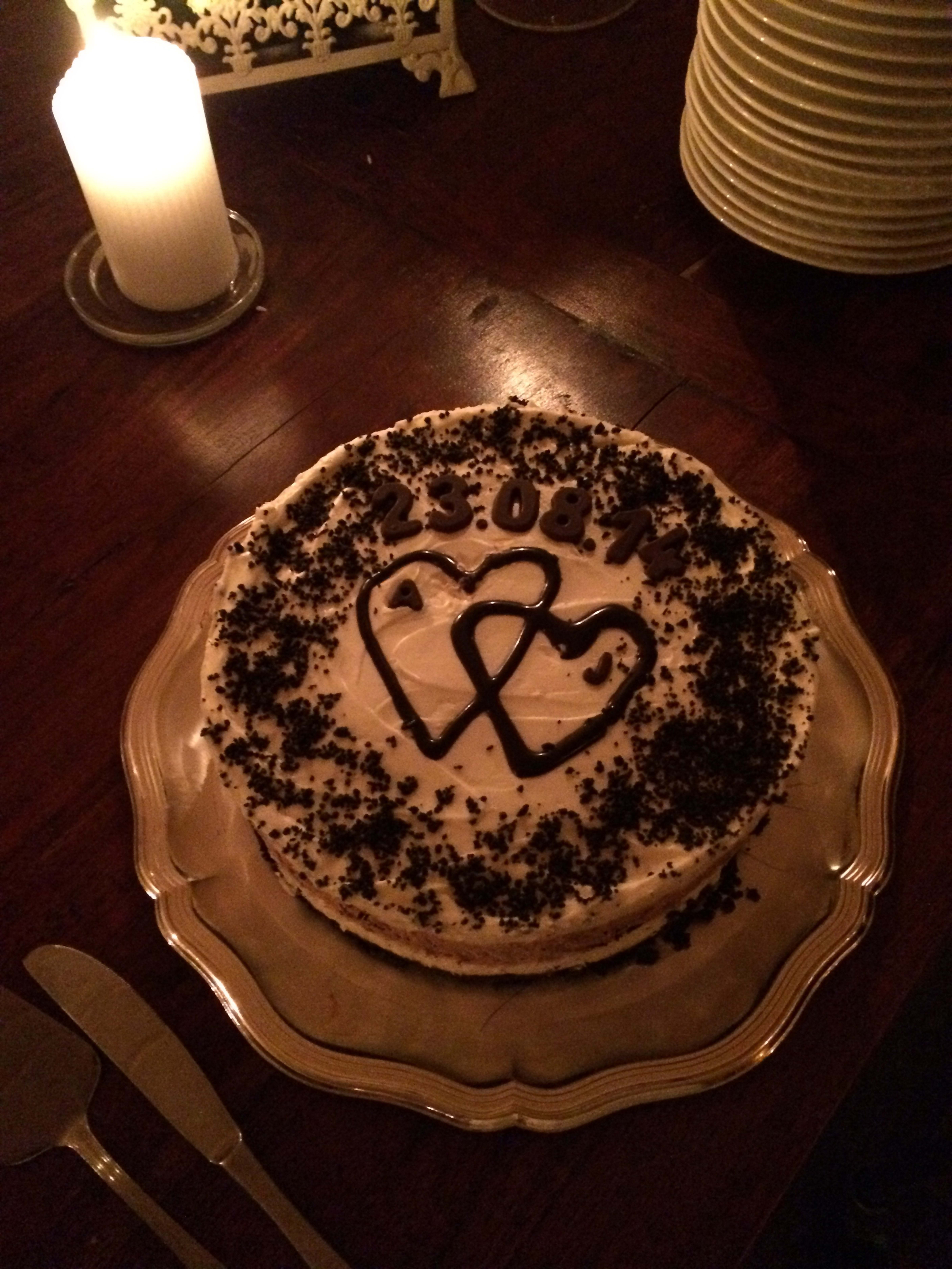 7. Lag moussen. Rør inn de kjeks bitene i moussen. Smør massen over kaken og sett i kjøleskapet ca ett døgn.