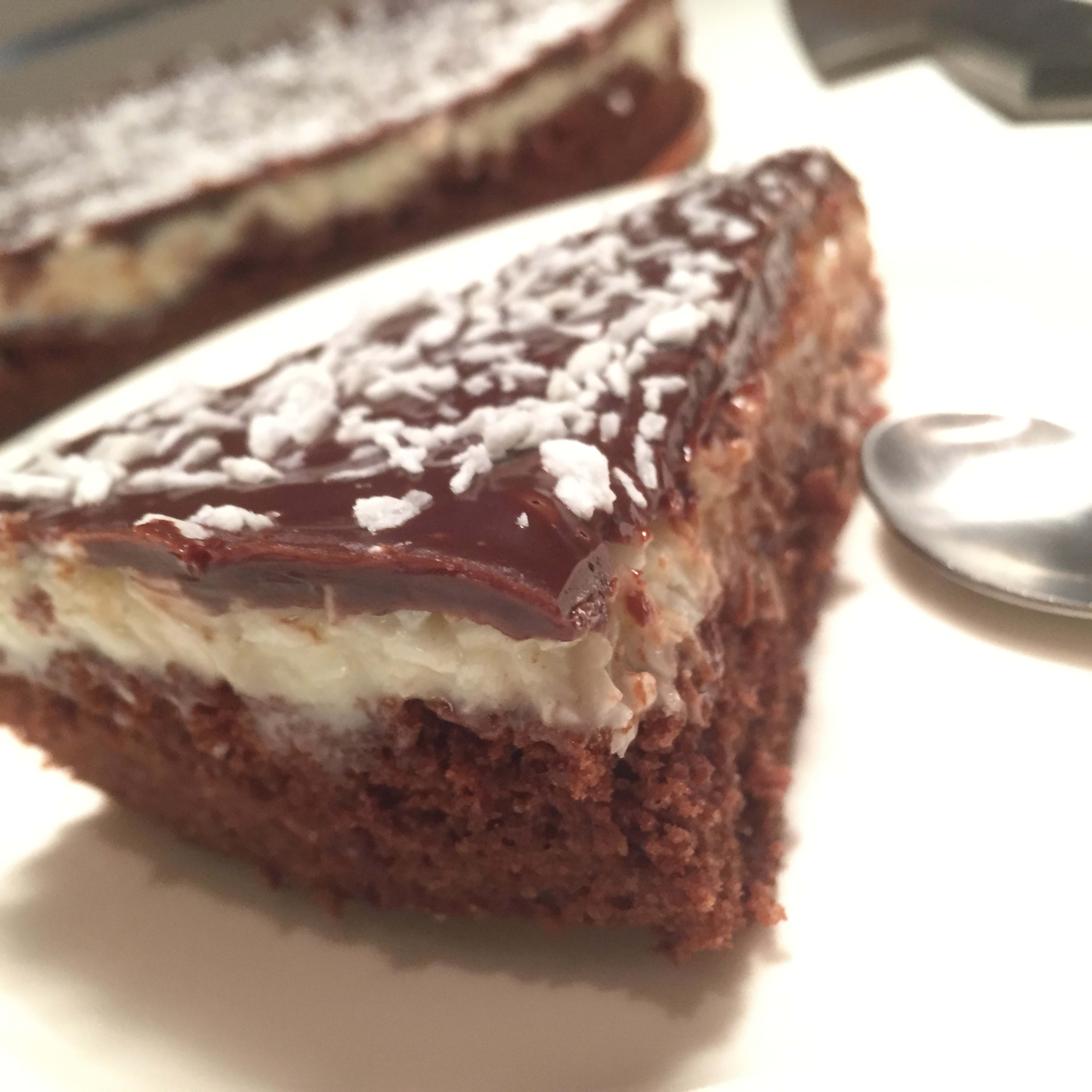 11. Smør trøffelkremen over kaka og dryss på litt kokos til pynt.