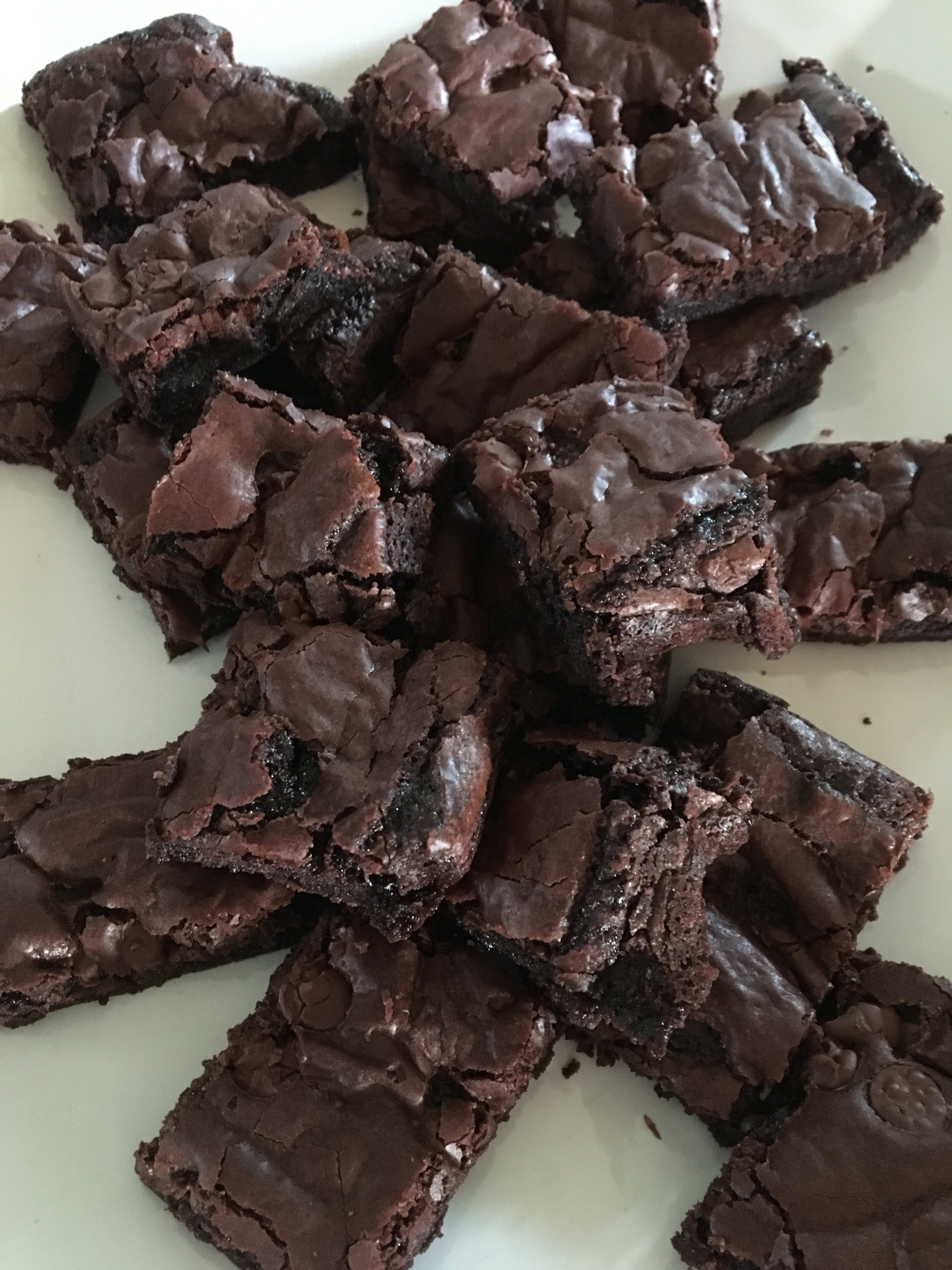 Ikke stek forlenge brownien skal være seig/myk i midten med en sprø topp og kanter.