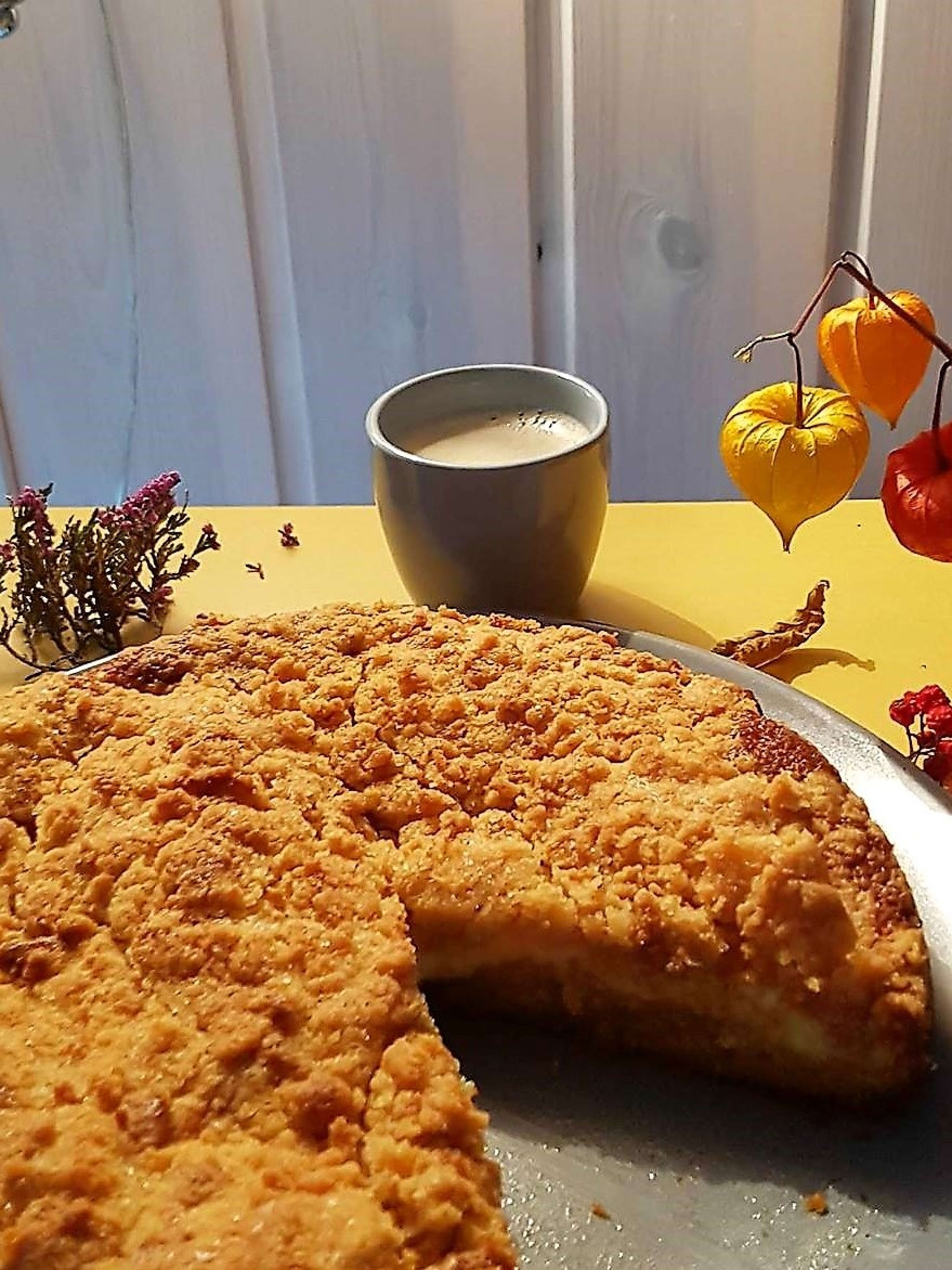 Bland smør, hvetemel, sukker og kanel. Sette til side.
