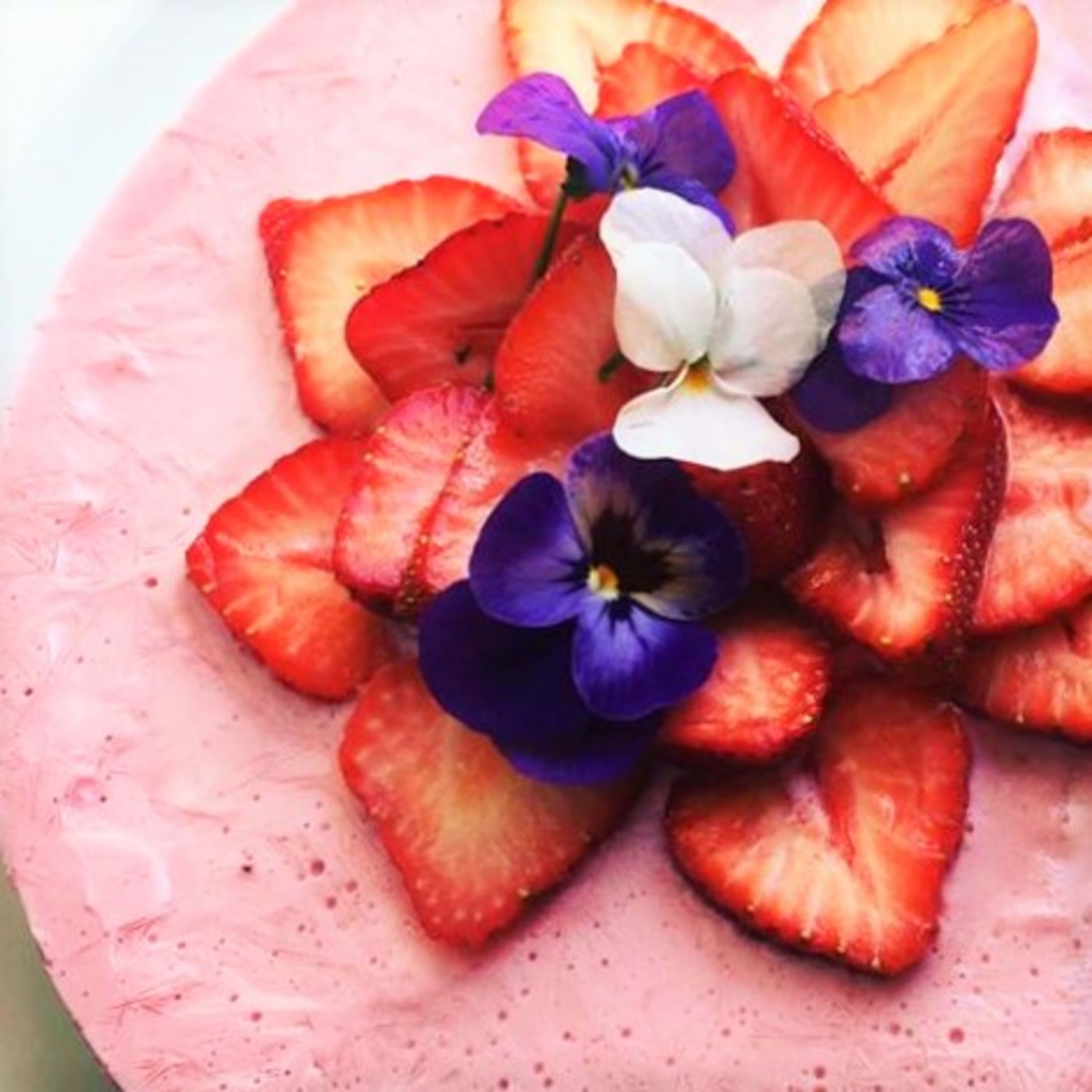 Mos jordbær, grapesaft og honning i en foodprosessor eller blender. Hell jordbærmosen i en stor bolle og tilsett kesam. Bland godt, fordel blandingen over kakebunnen i formen - 20 cm springform og sett den i fryseren i min 1 1/2 t. Kaken kan oppbevares noen dager i fryseren,, men ta den ut 20 min før servering slik at den får tint litt.