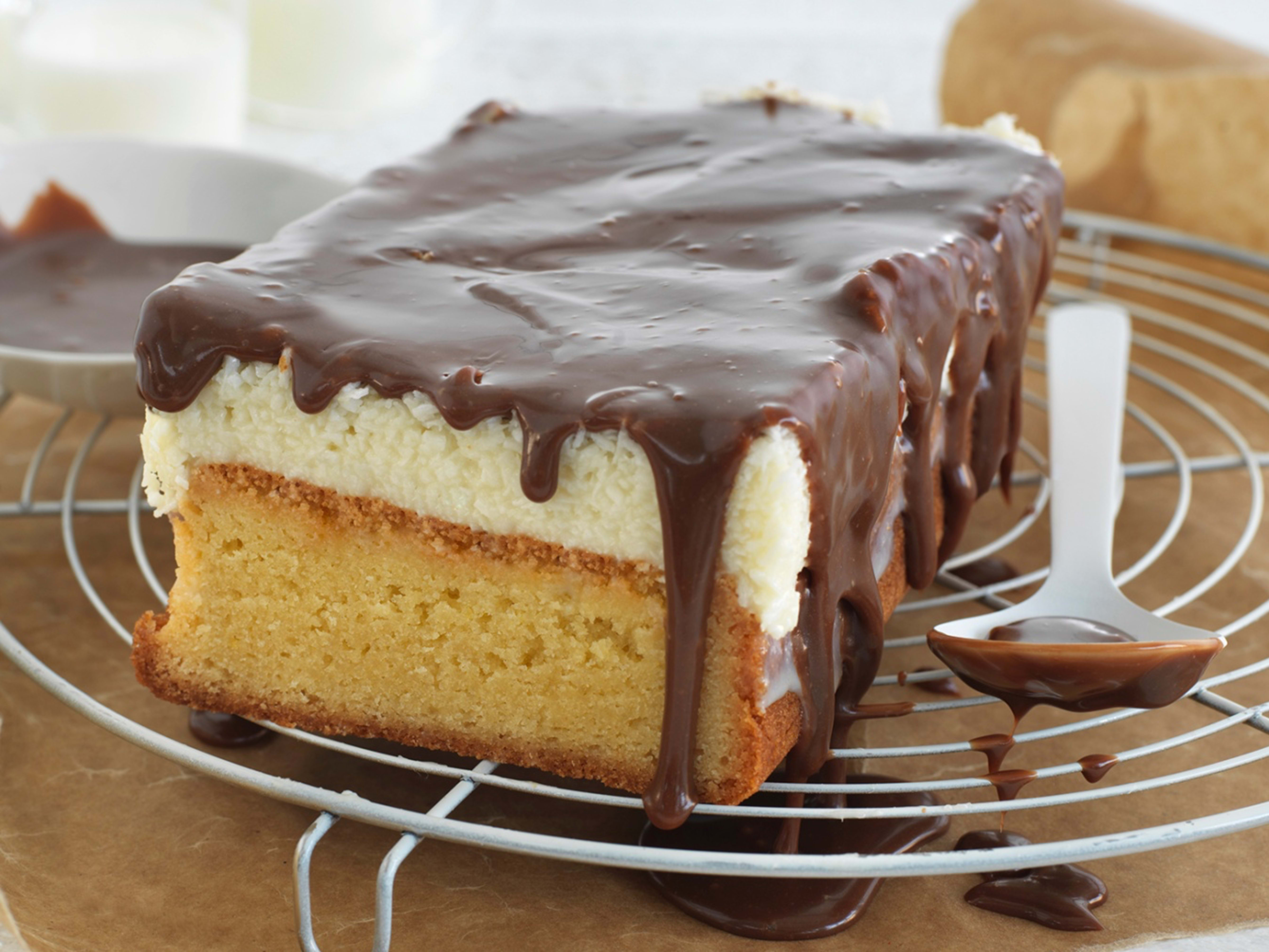 Legg gjerne kaka på en bakerist med bakepapir under når du heller over glasuren.