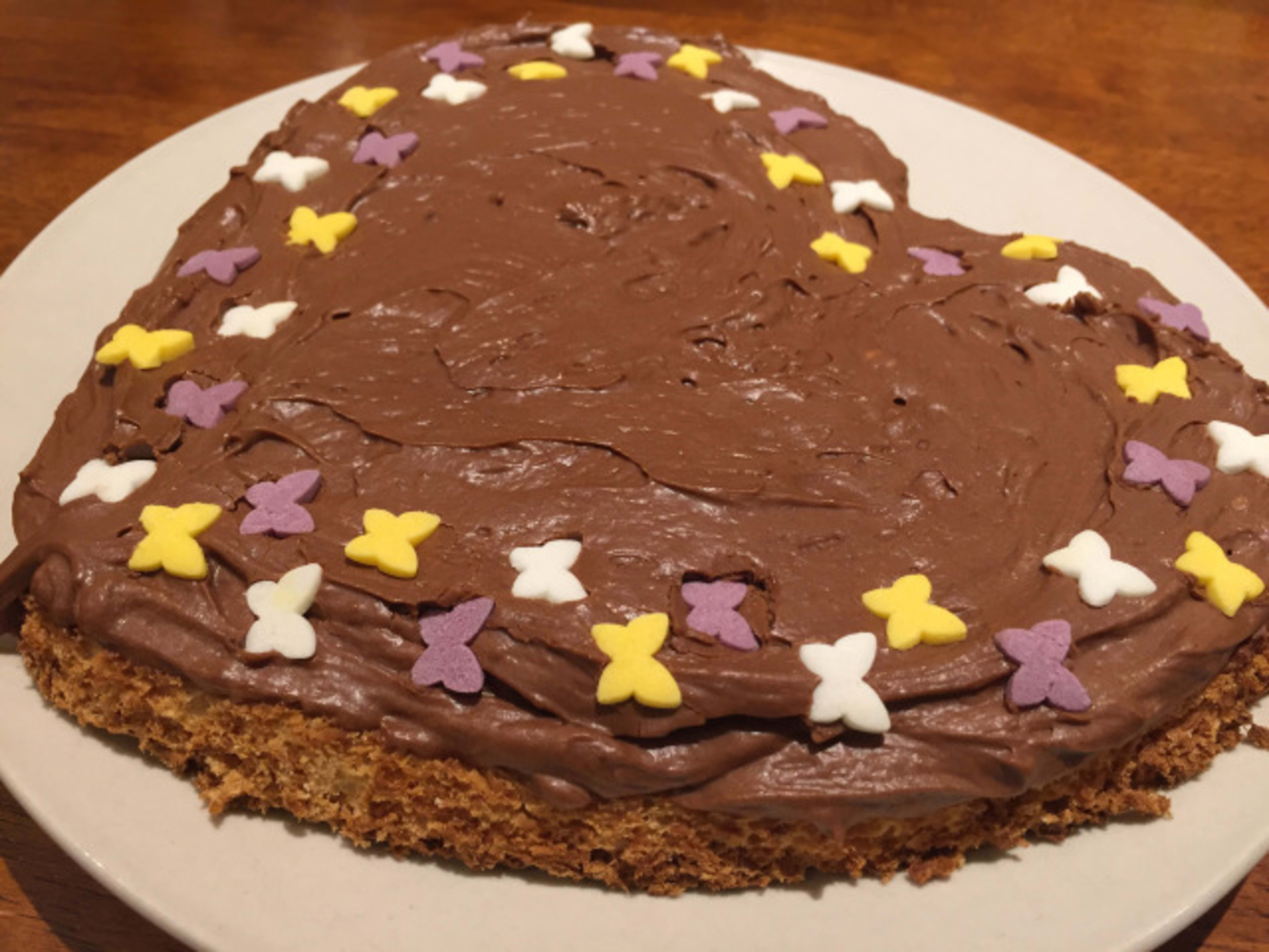 Kle bunnen av en middels springform med bakepapir. Hell i røren og stek kaken ved 200 grader i 15-20 minutter. La kaken avkjøles i formen.