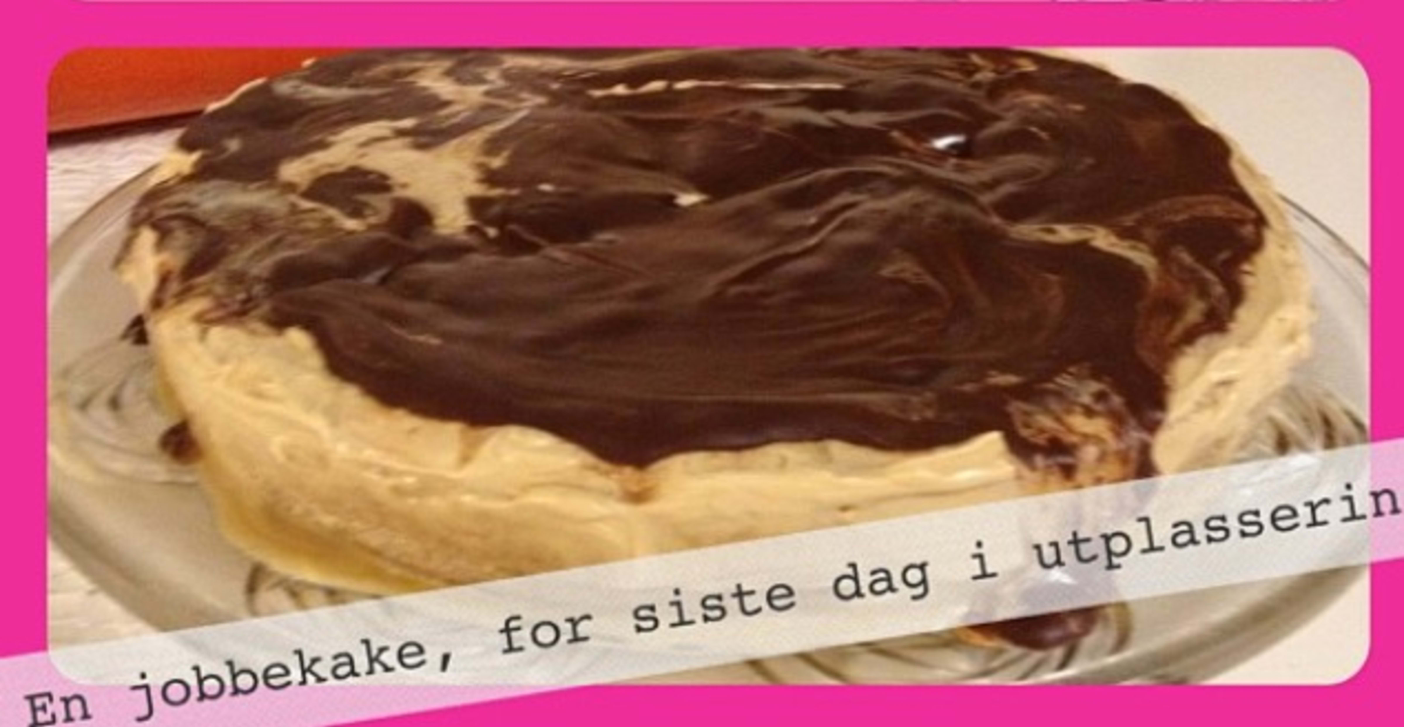 Kokesjokolade og bremykt smeltes over vannbad og kjøles litt ned, før d bres over kaken.