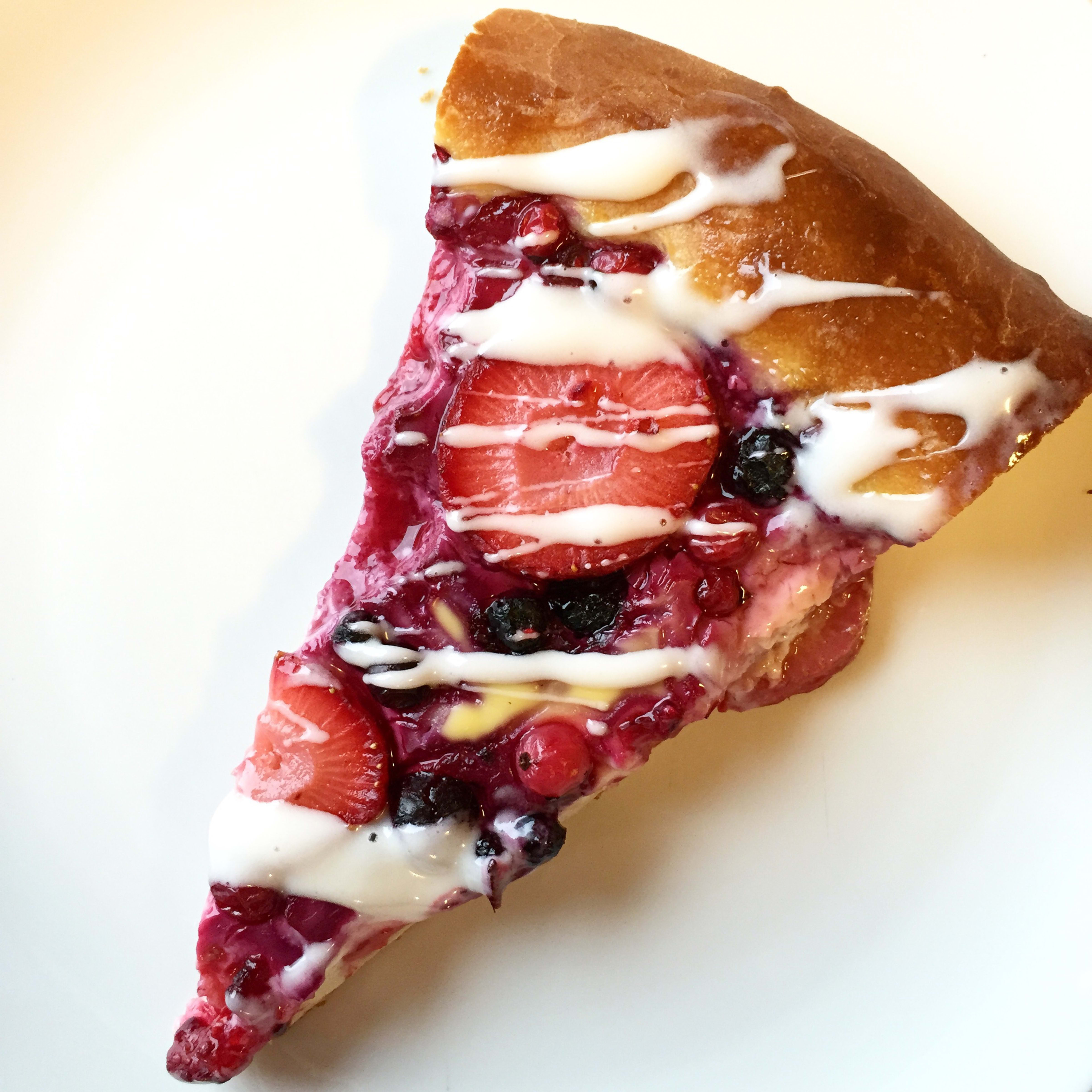 9. Strø over diverse bær og la pizzaen heve i ca 15 min.