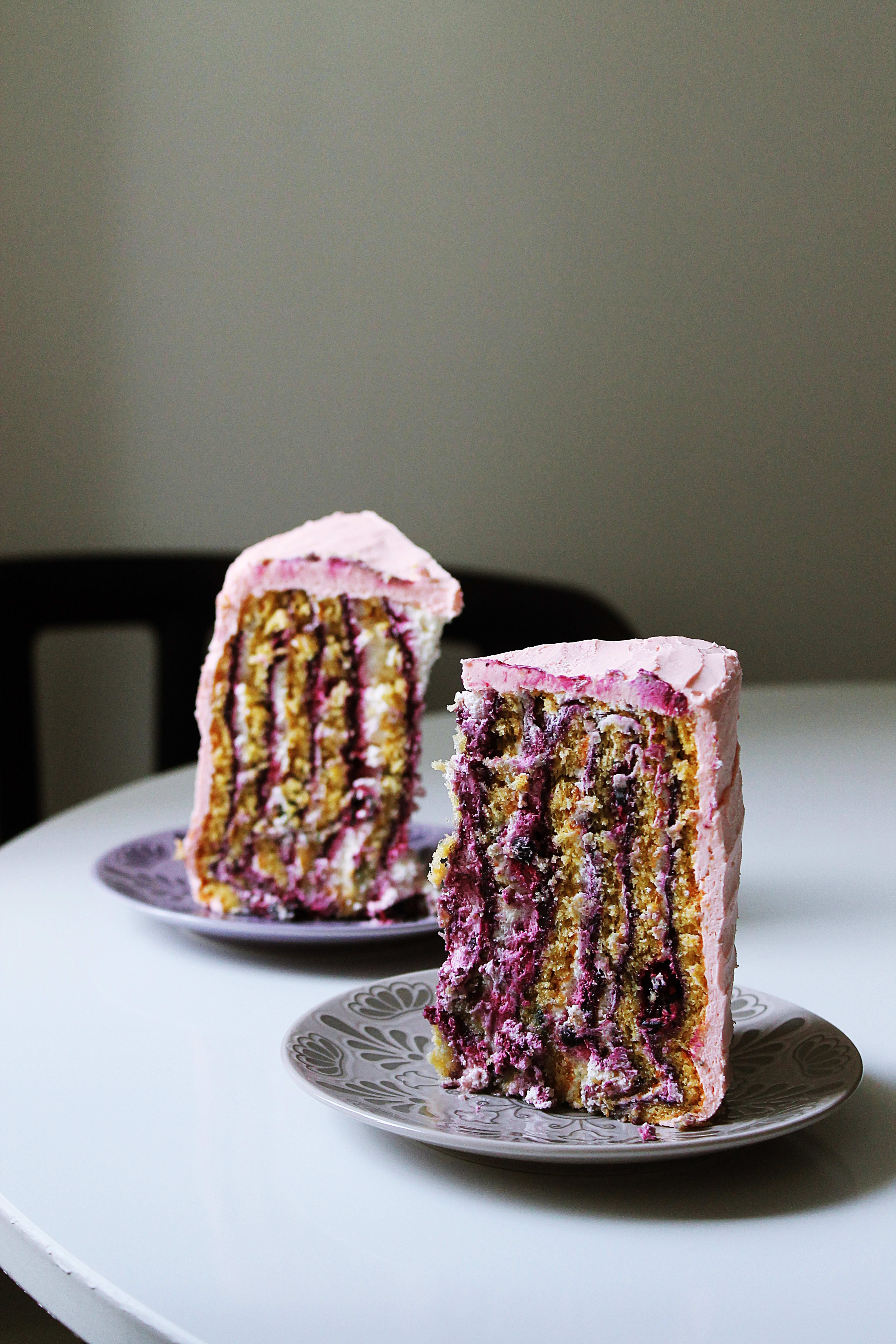 Montering: Del hver kake opp på langs i 2 striper. Smør først solbær curd over stripene, og kremfløte etterpå. Strø solbær over stripene. Rull sammen den ene stripen. Legg rullen deretter på den andre stripen og fortsett å rulle så du får en spiral. Fortsett på en sånn måte med de to andre.