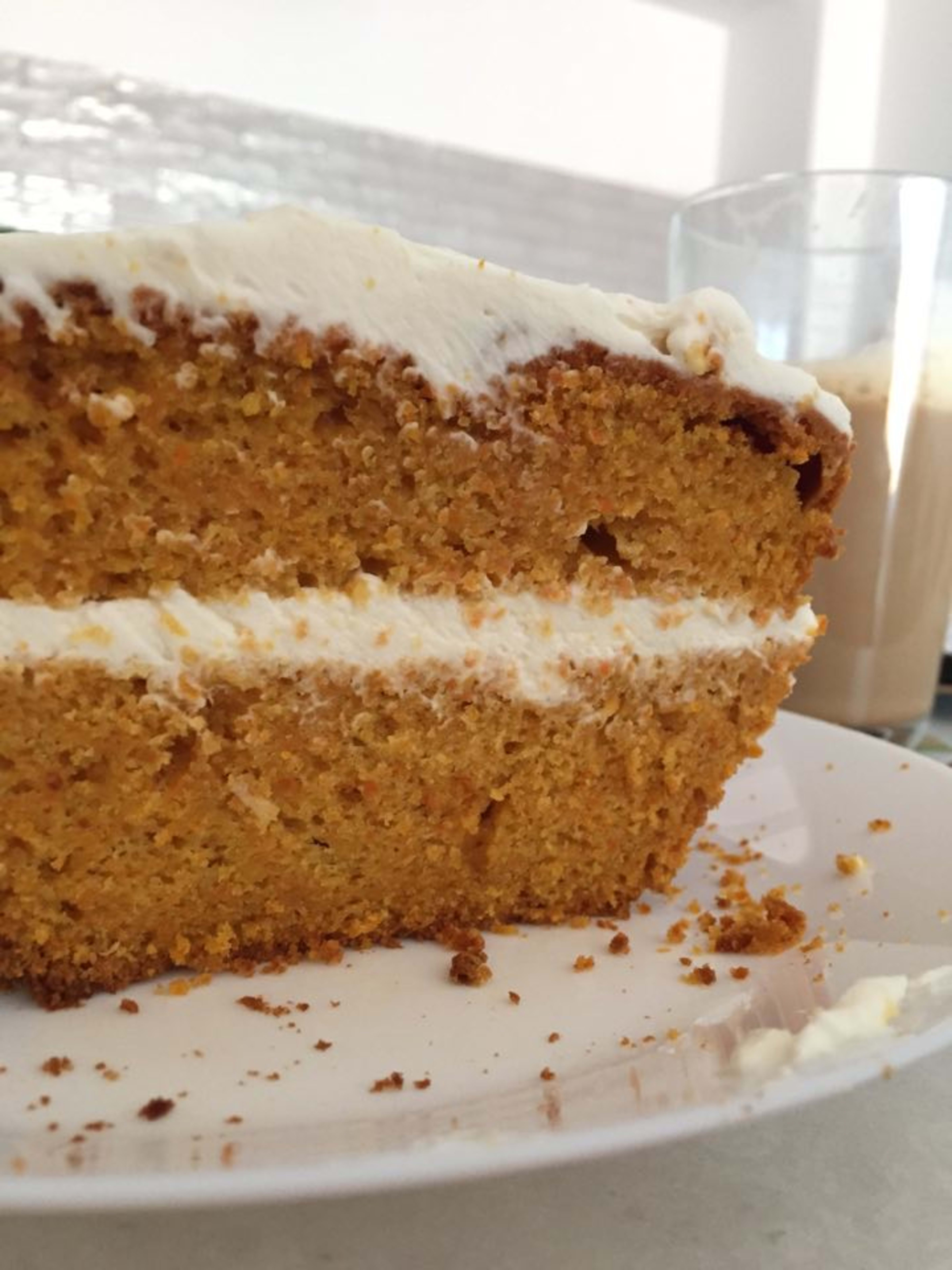 4. Deigen legges i en kakeform (gjerne silikon, ellers husk bakepapir!) og settes i ovnen i cirka 50-60 min (prik med en tannpirkker og skjekk om kaken er ferdig - tannpirkeren må komme ut uten noe deig på).