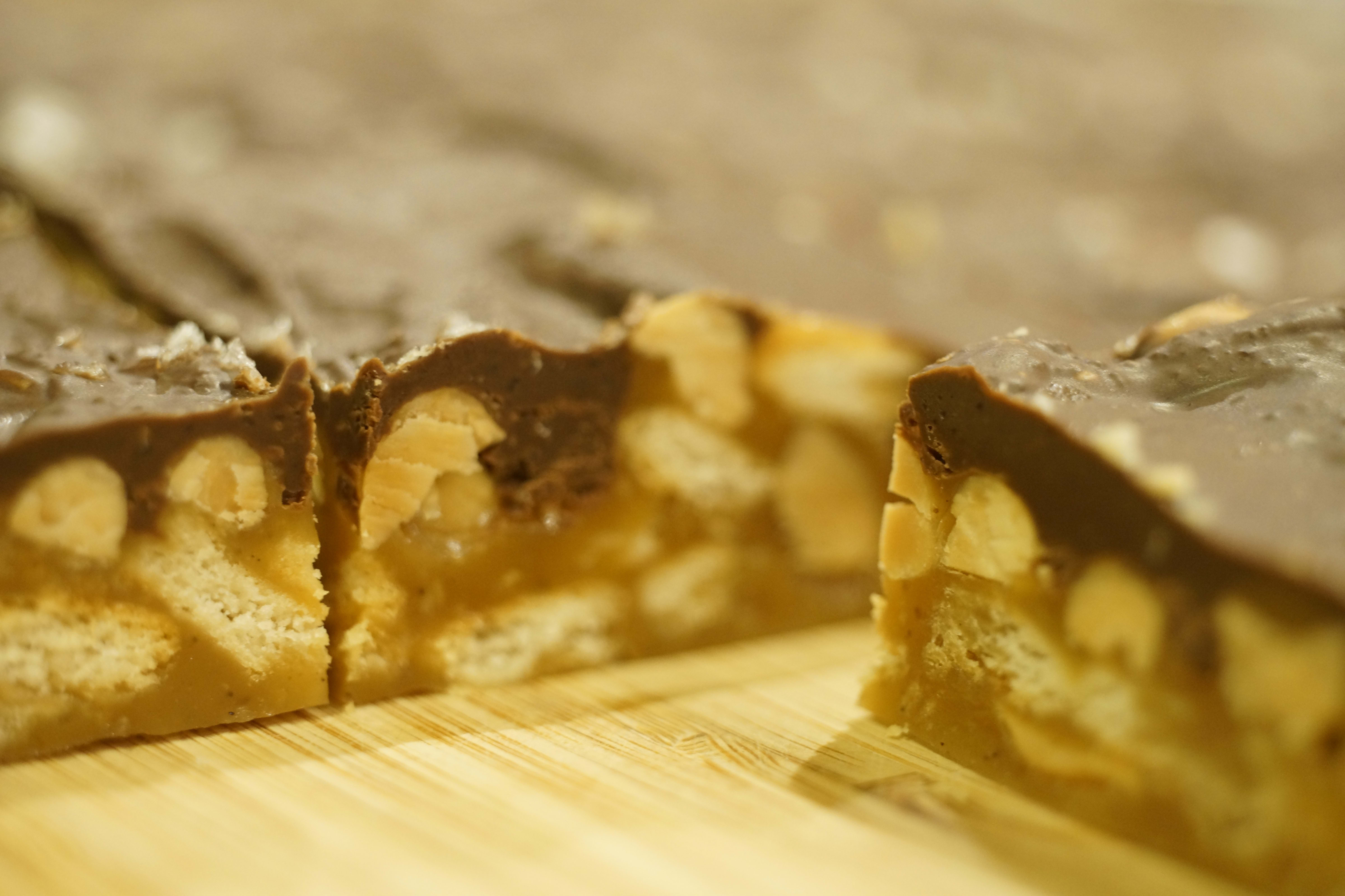 4. Smelt sjokoladen med bremykt i et vannbad. Vær forsiktig med å ikke varme blandingen for mye. Anbefaler å fordele sjokoladeblandingen utover karamellen så snart den er flytende.