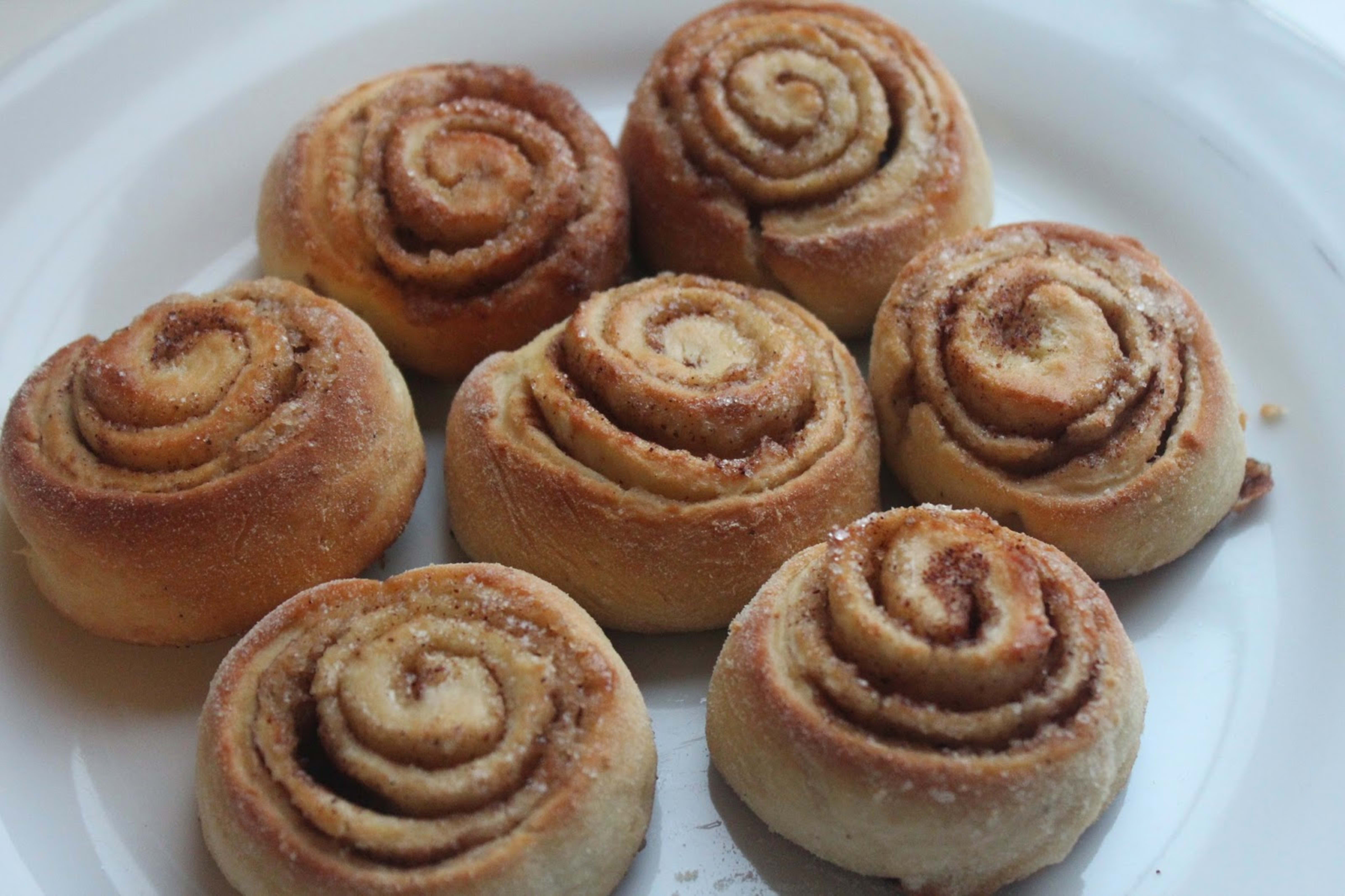 7. Tilsett sukker og kanel, og rull det hele sammen. Skjær den rundt 1,5-2 cm tick.