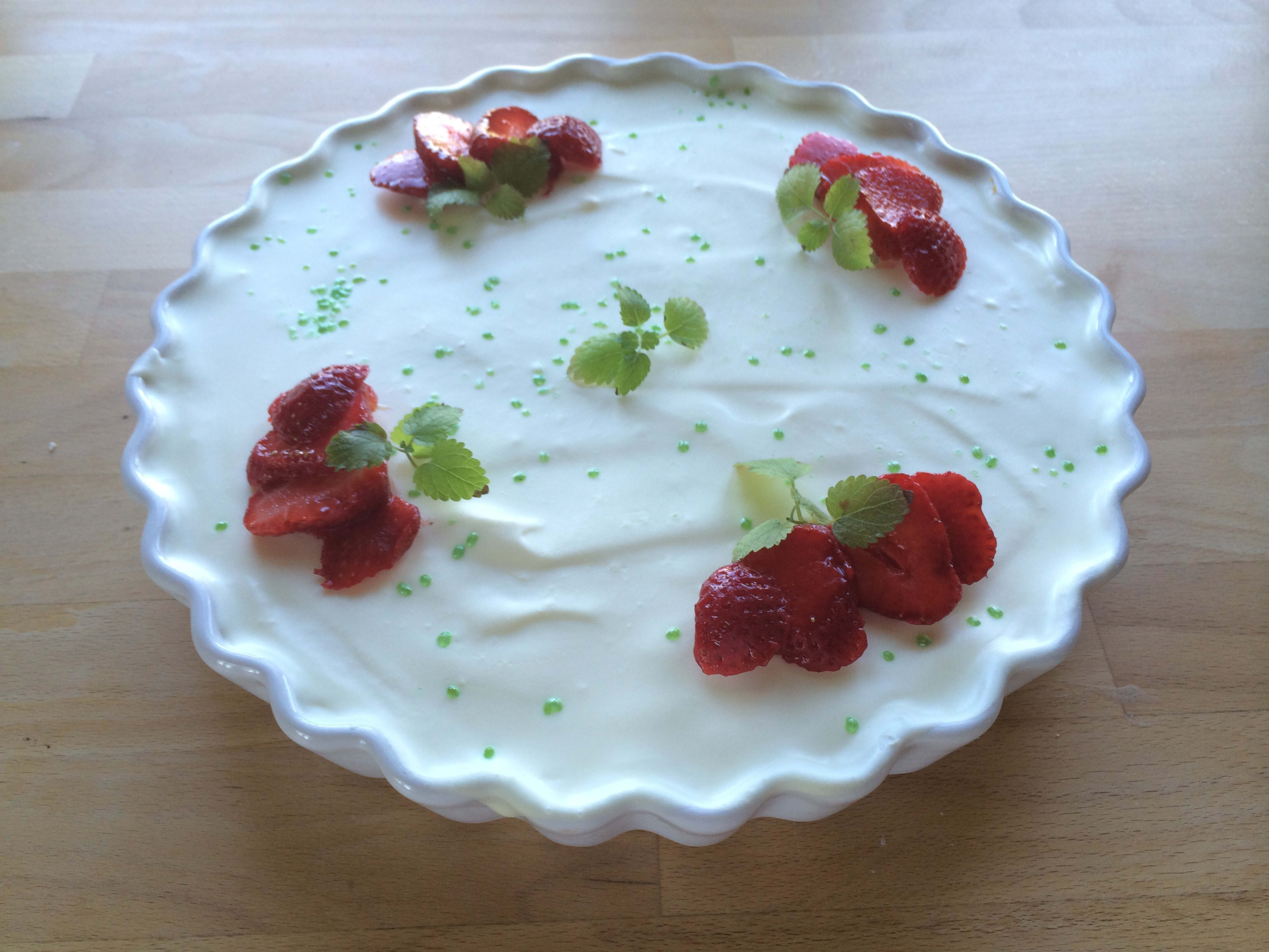 Hell blandingen over i den avkjølte formen. Settes kaldt.
