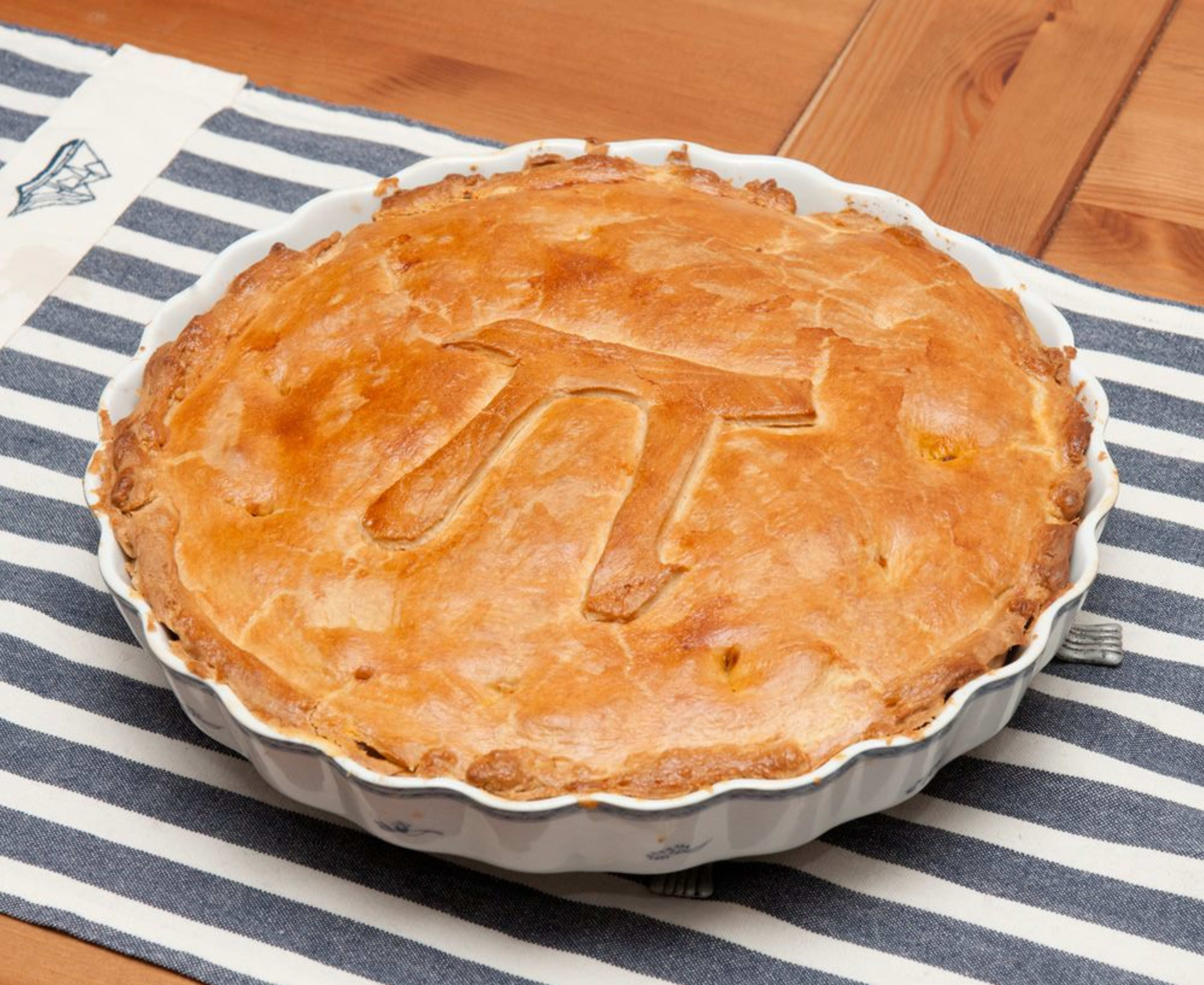 Bruk gjerne overskytende deig til å lage et fint mønster på lokket, for eksempel tegnet for pi.