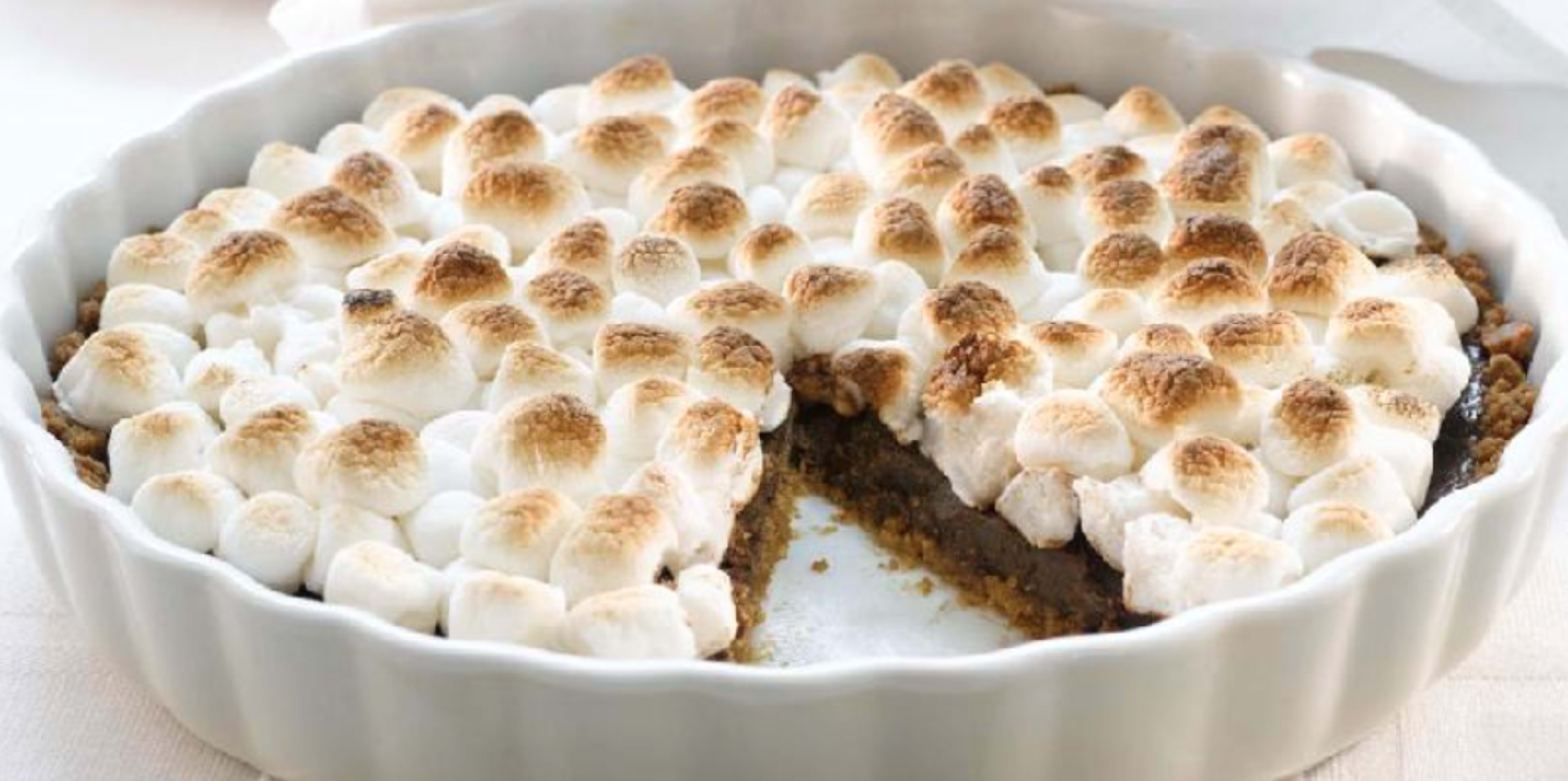 4. La paien stå til marshmallowene er gyldne og deilige (ca 3 - 4 minutter) før du tar paien ut og lar den hvile i 10 minutter før du fjerner folien fra kantene.