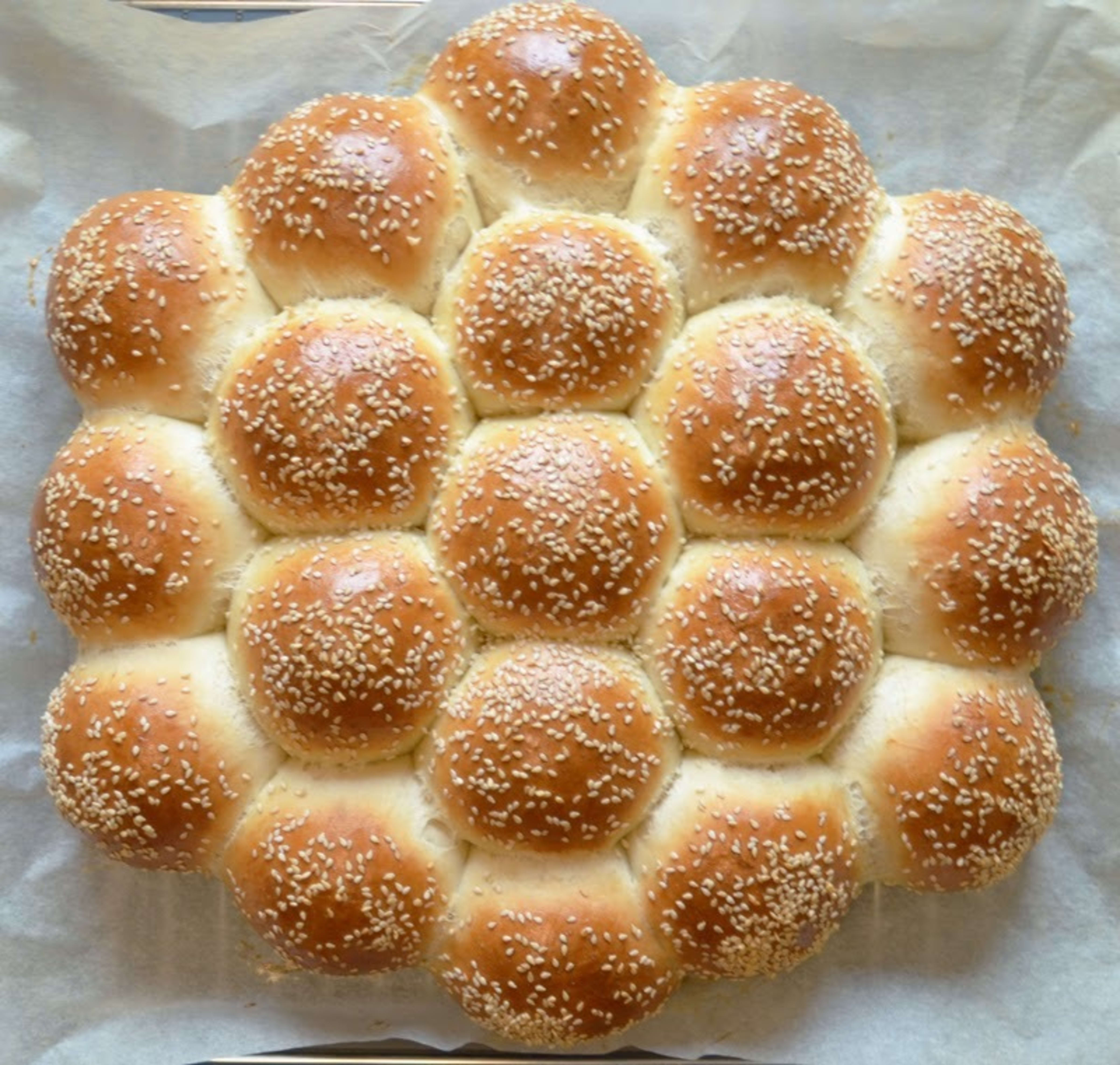 Når det er etterhevet pensler du med egg og stør på sesam- eller valmuefrø.