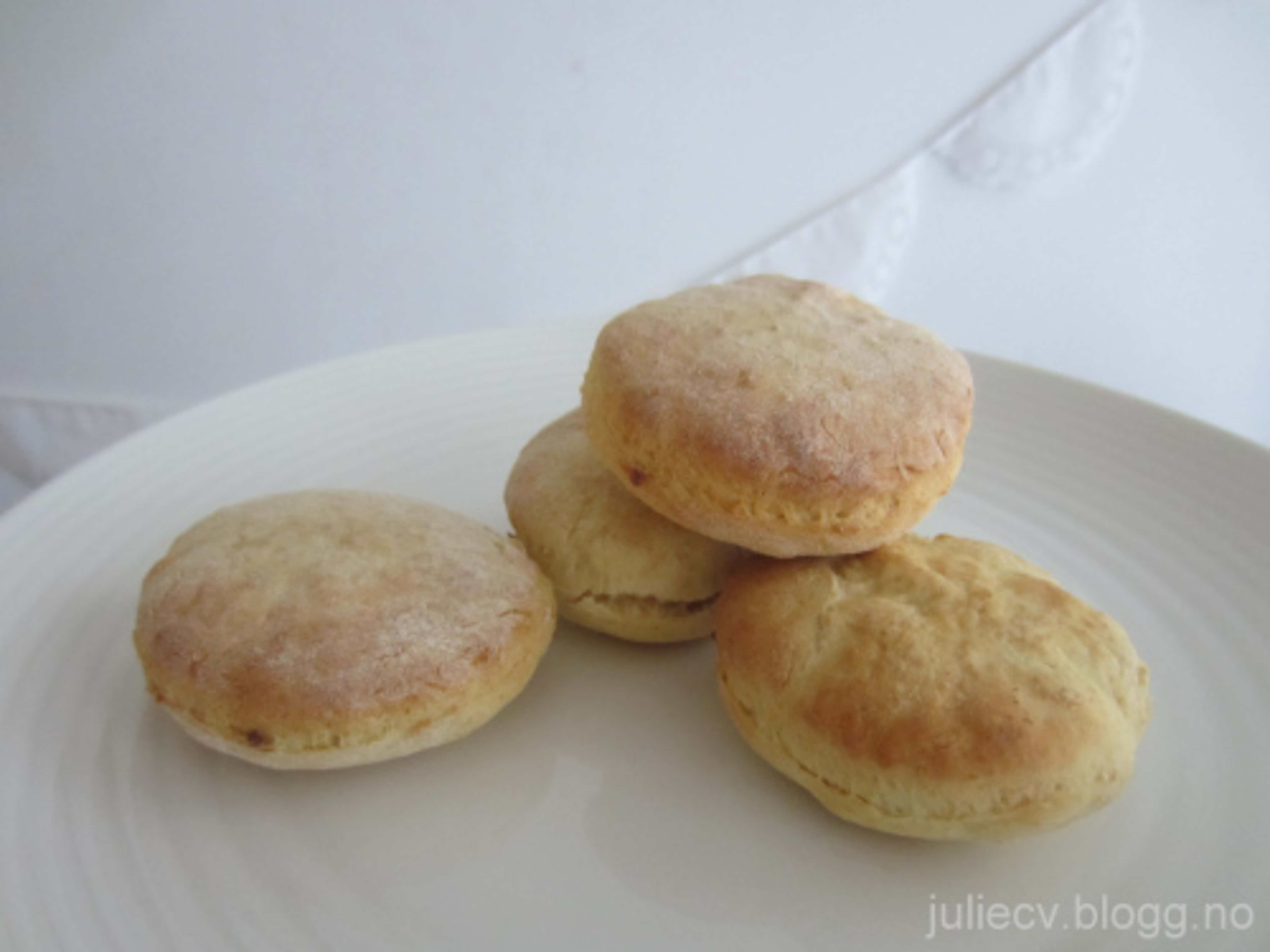 Sett ovnen på 225 grader. Smelt Bremykt. Hold igjen litt av melet og bland resten av melet med de andre tørre ingrediensene. Bland egg, melk og Bremykt med de tørre ingrediensene og tilsett melet du holdt igjen litt og litt til det blir en smidig deig. Kjevle ut deigen til en lefse på ca 3 cm og stikk ut scones med den åpne enden et glass. Stek sconesene til de blir gyldne og avkjøl på rist. Smaker kjempegodt nybakte med Bremykt og ditt favorittpålegg.