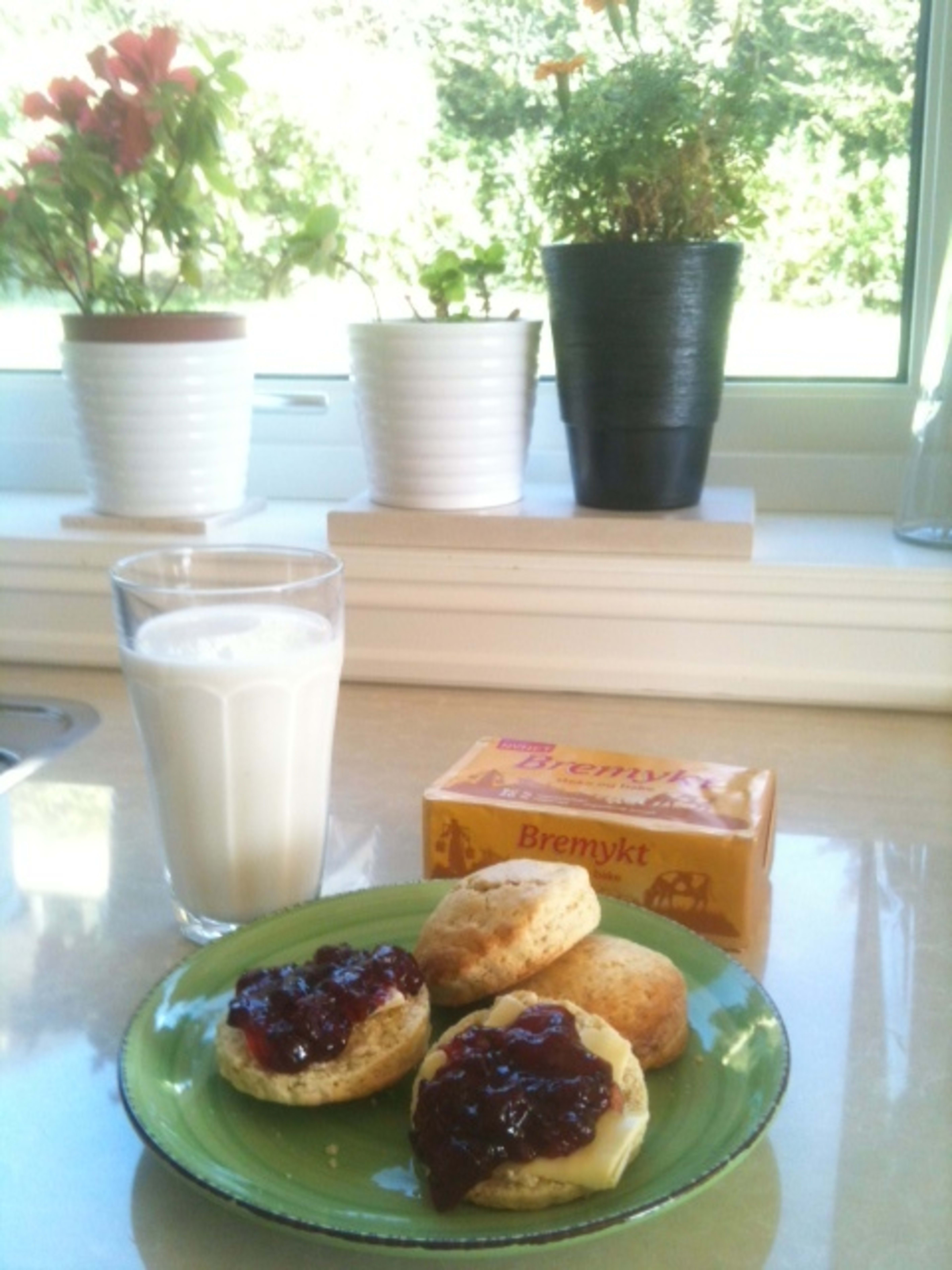 Gjør ca 10 - 2 1/2 tommer (6,5 cm) runde scones.