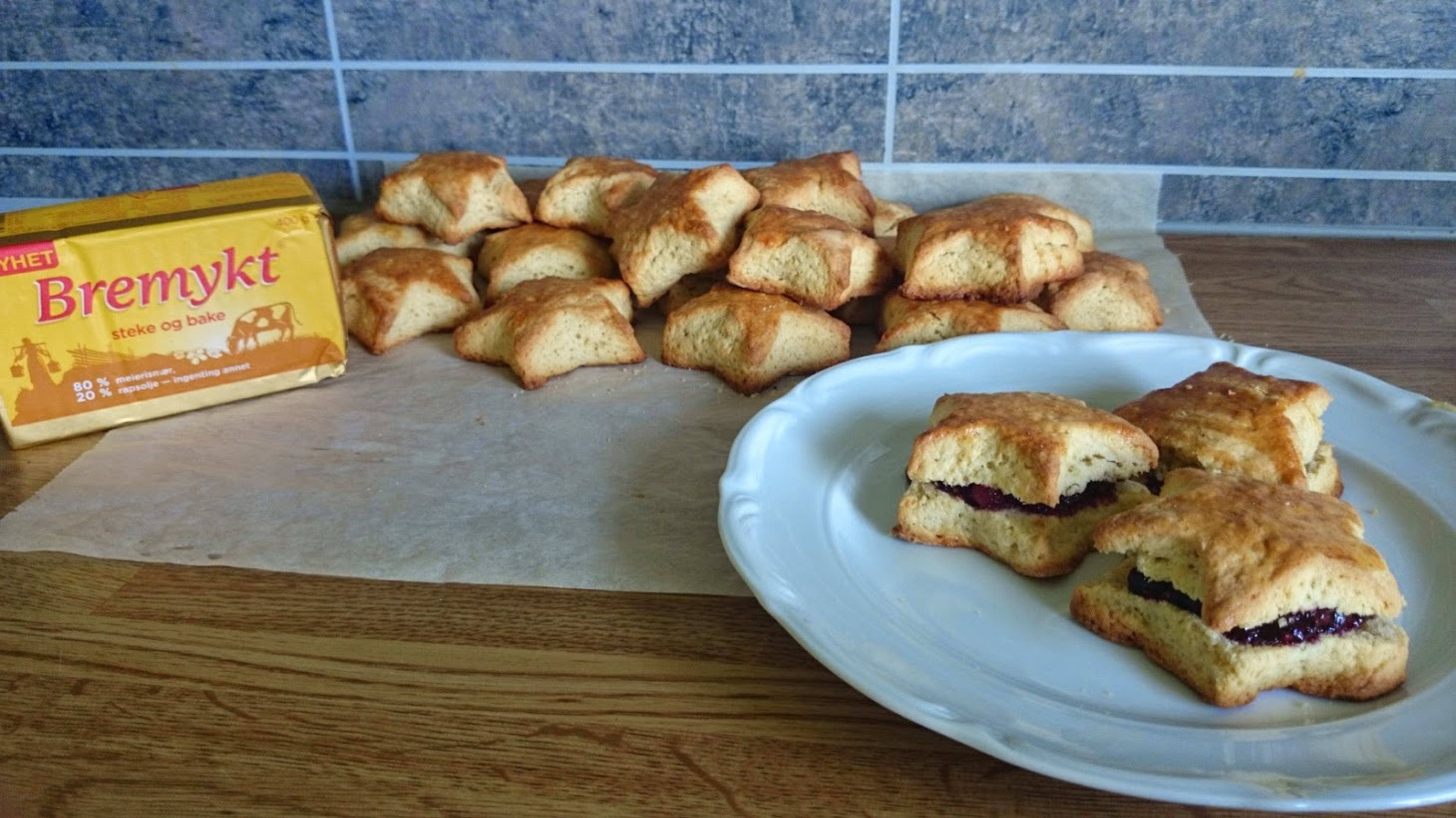 5. Kjevl ut til deigen er ca 1,5 cm tykk. Stikk ut stjerner med form og plasser på en plate med bakeark. Gjenta til du er tom for deig!