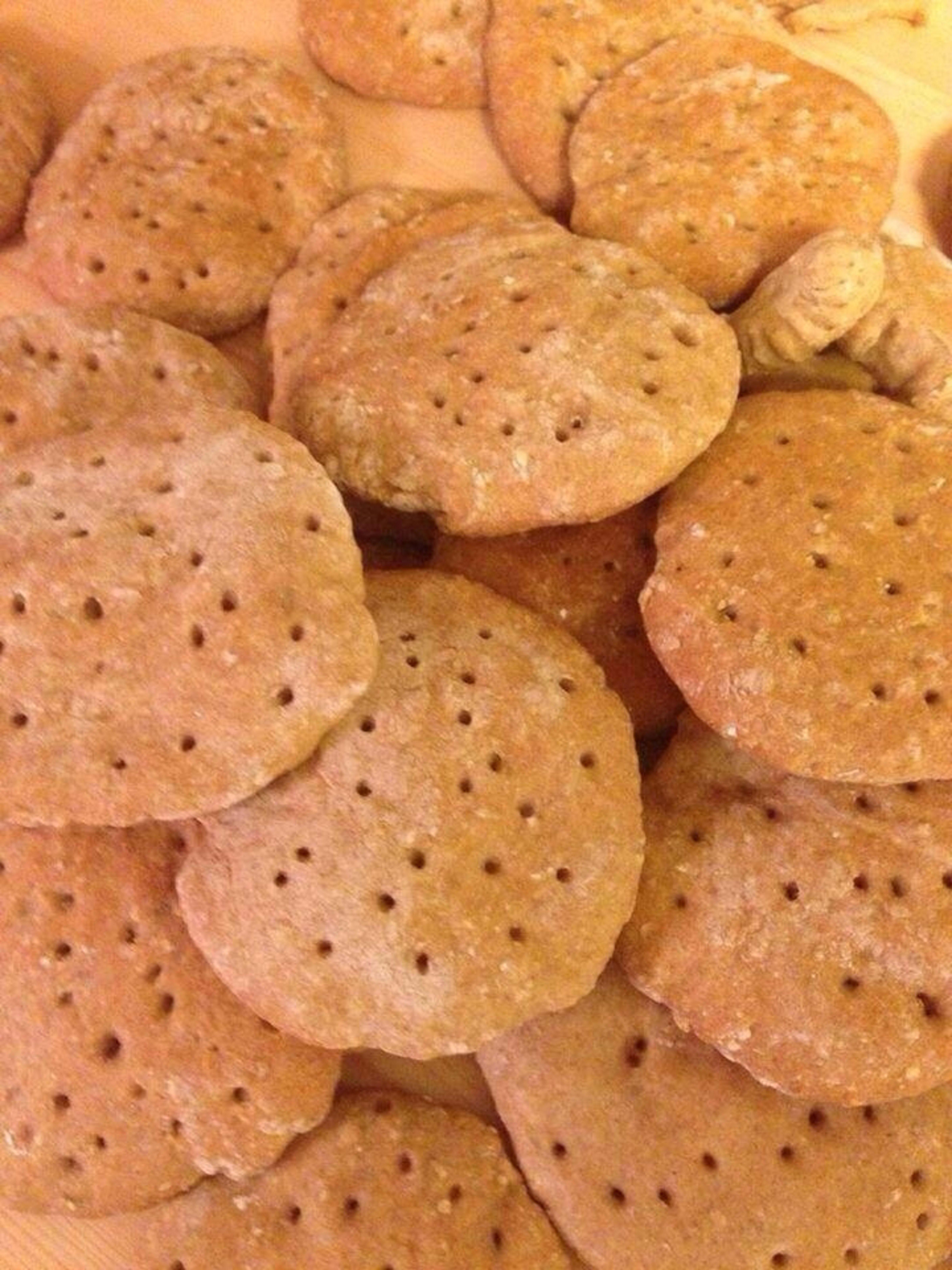 Bland det tørre først, og tilsett væske, gjær og gulrot. Elt godt, og elt inn smøret til slutt. Hev til dobbel størrelse. Del så deigen i like emner (ca 30 stk) og form ca 10 cm store rundinger som prikkes med en gaffel. Etterhev i 30-40 minutter før de stekes til de er gyldne på 180 grader. I min ovn tar dette 15 min!