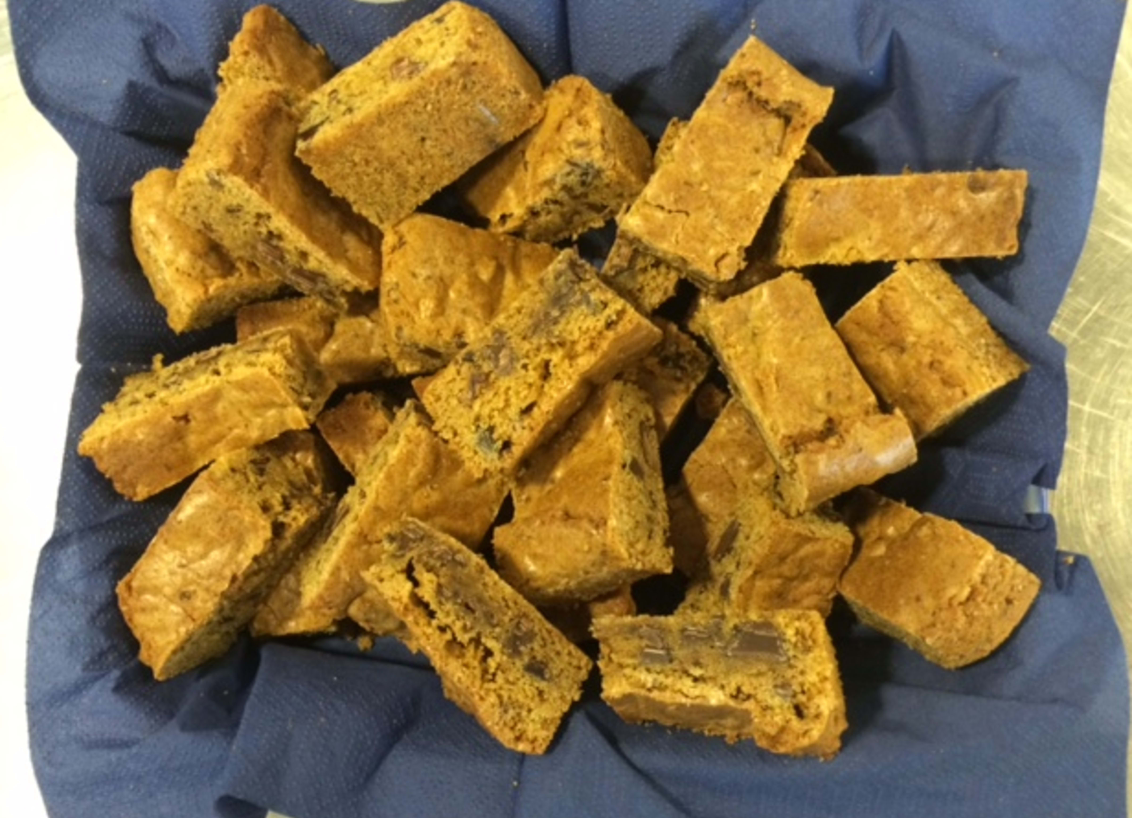 Del romtemperert Bremykt Steke & Bake i terninger og tilsett både brunt og hvitt sukker. Bland alt et par minutter til en jevn masse. Tilsett egg, vaniljeessens, mel, bakepulver og salt. Når alt er blandet til en jevn masse skrur du av maskinen. Kjører du den for lenge, vil smøret smelte og det skal vi helst unngå.