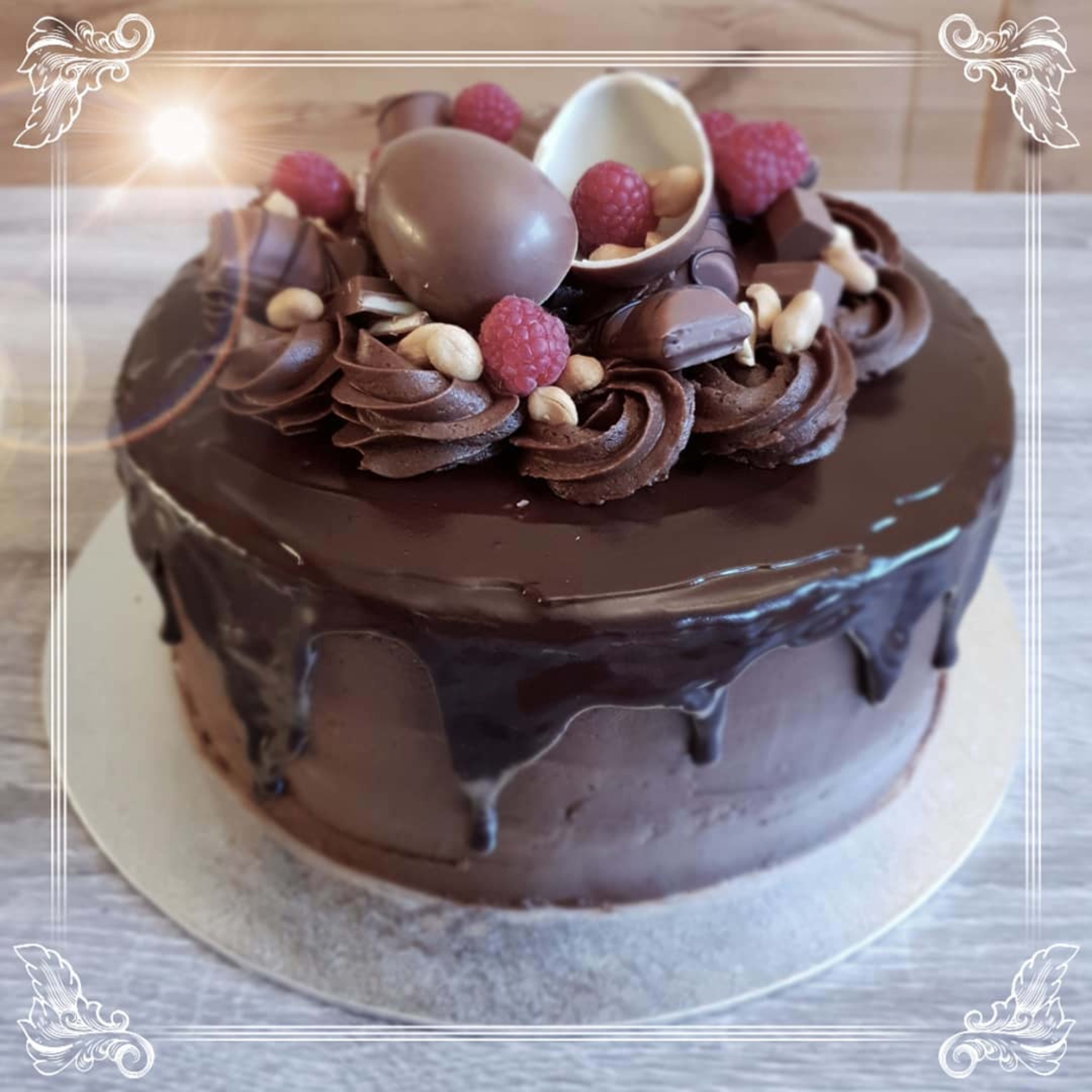 5. For best resultat, anbefaler jeg at du tar et tynt og jevn lag med frosting på kaken, slik at du får festet smulene. Sett kaken i kjøleskapet slik at dette laget får stivne, før du fortsetter med frostingen, og pynter etter ønske.