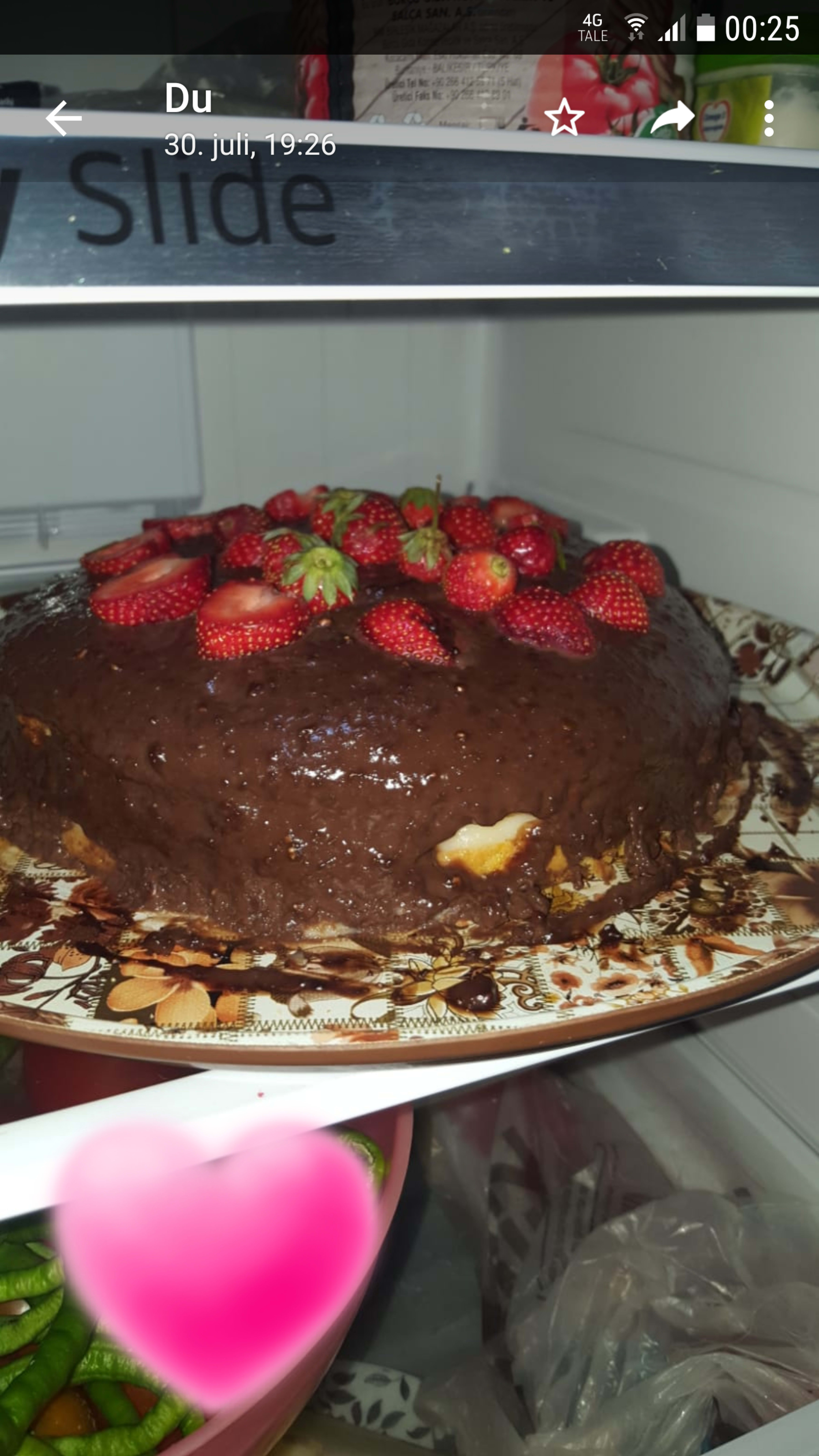 Saus:bland alt sammen i en gryte og koke den til blir som krem i små koking og la den i kjølig deretter la kaken litt kjølig deretter søyle et glass melk i kaken og smør sausen pynt som du vil. Vær så god