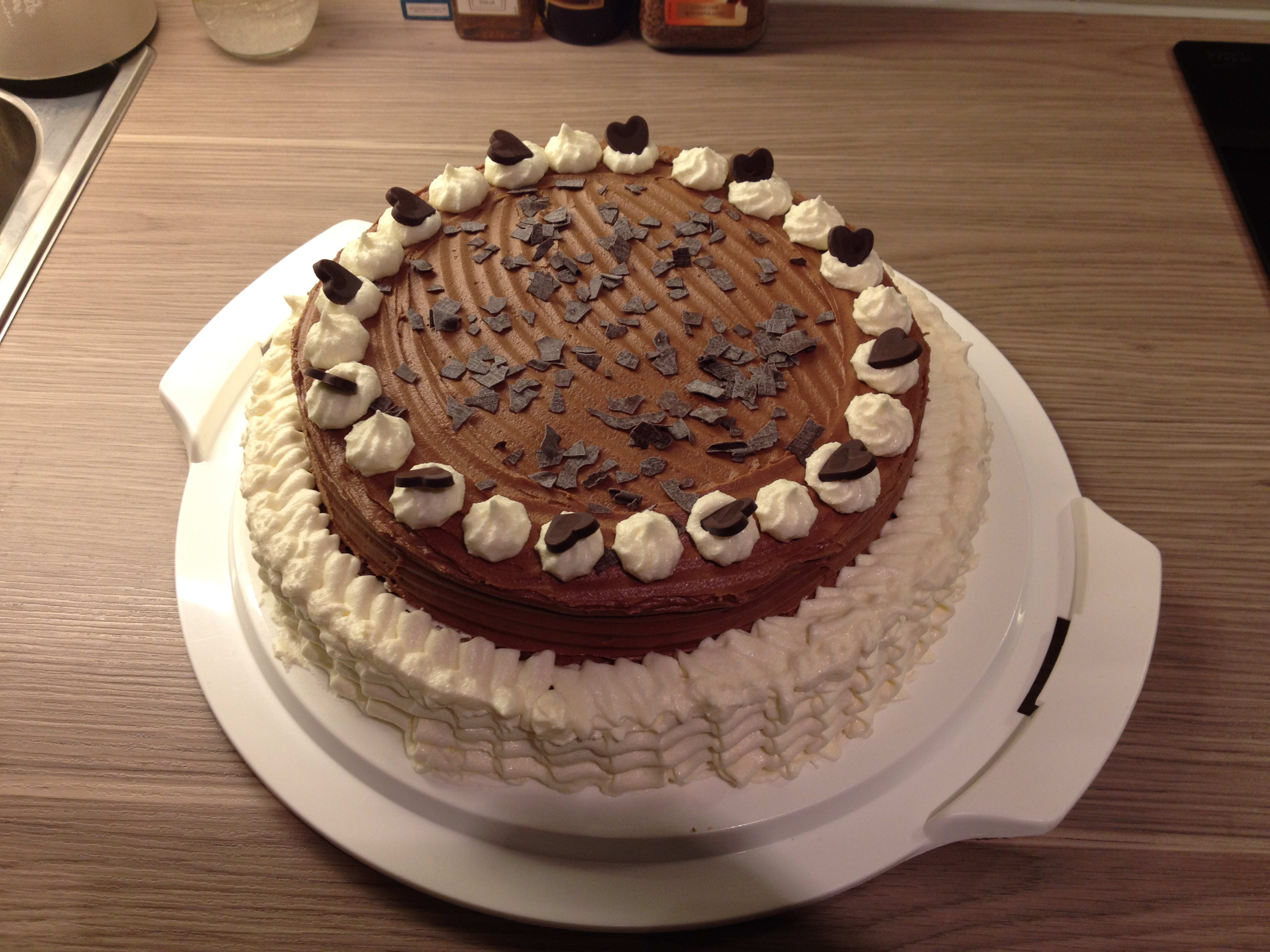 Helles over i stor form eller to små og stekes på 175 grader i ca 25 minutter, avkjøl kaken i førmen, og sett den deretter i fryseren i 30 minutter.