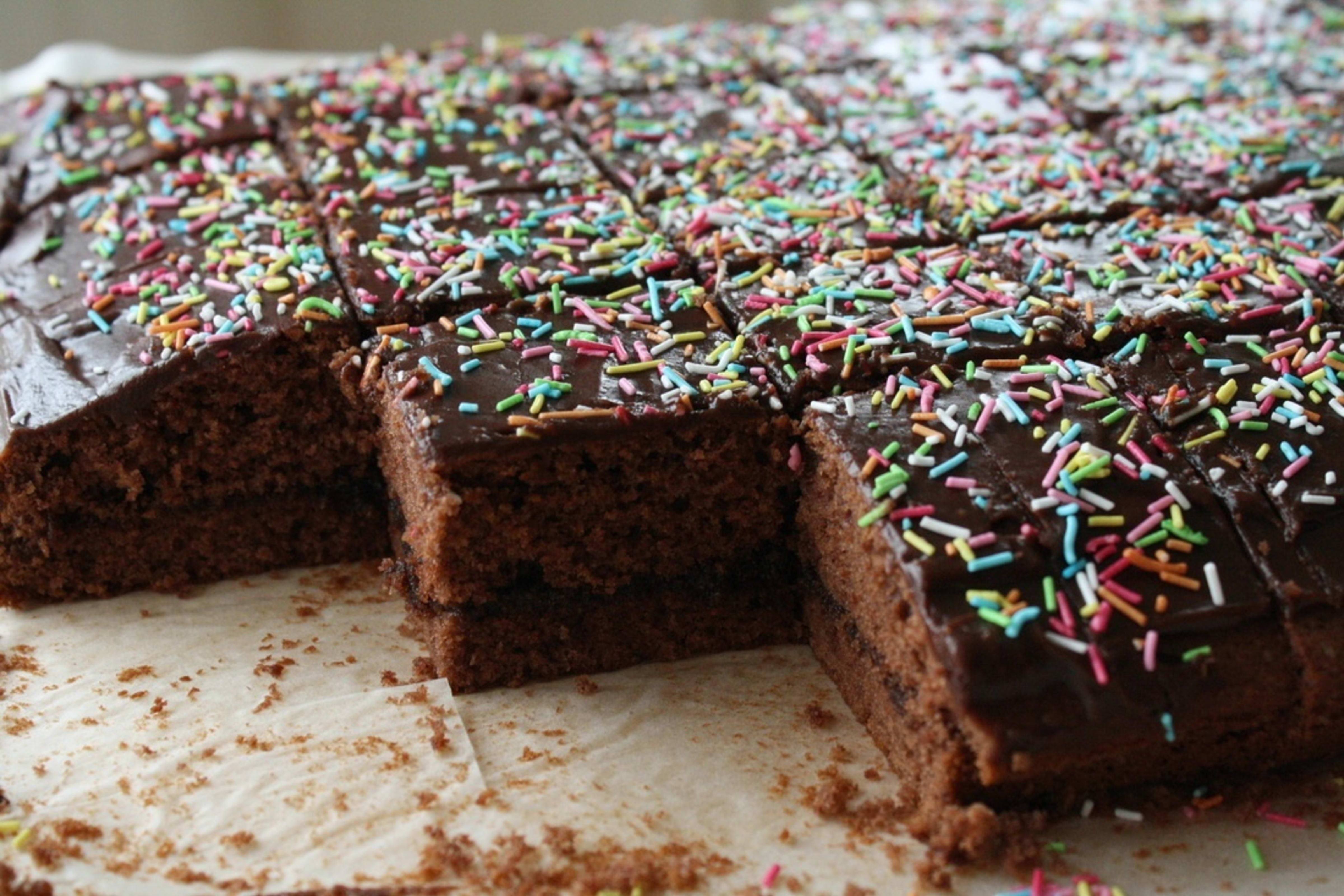 Man kan pynte kaken med kokos, popcorn, friske bær eller strøsel.