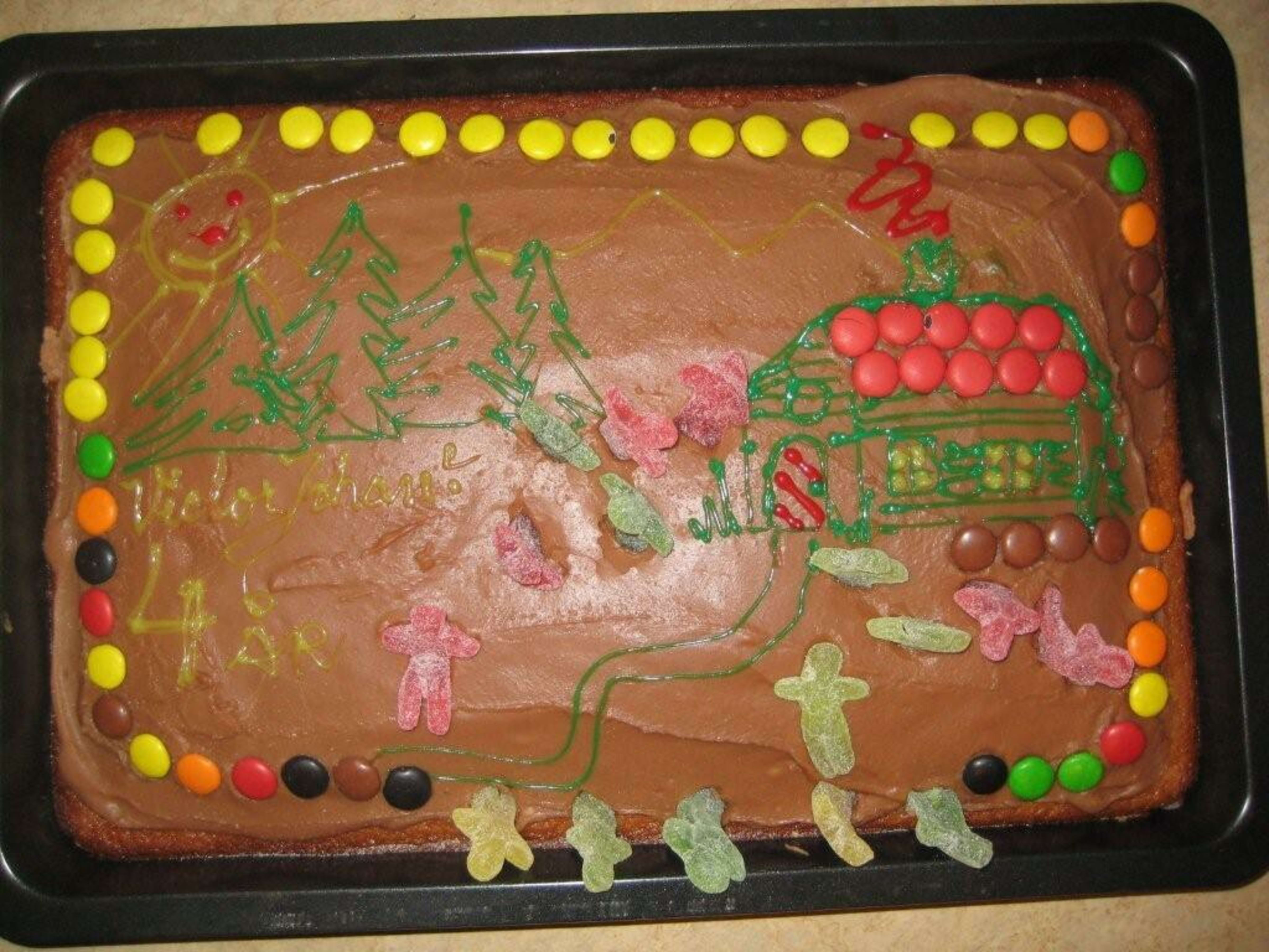 Bland alle ingrediensene til glasuren i en kjele og varmes sakte på svak varme. Påføres når kaken er avkjølt.