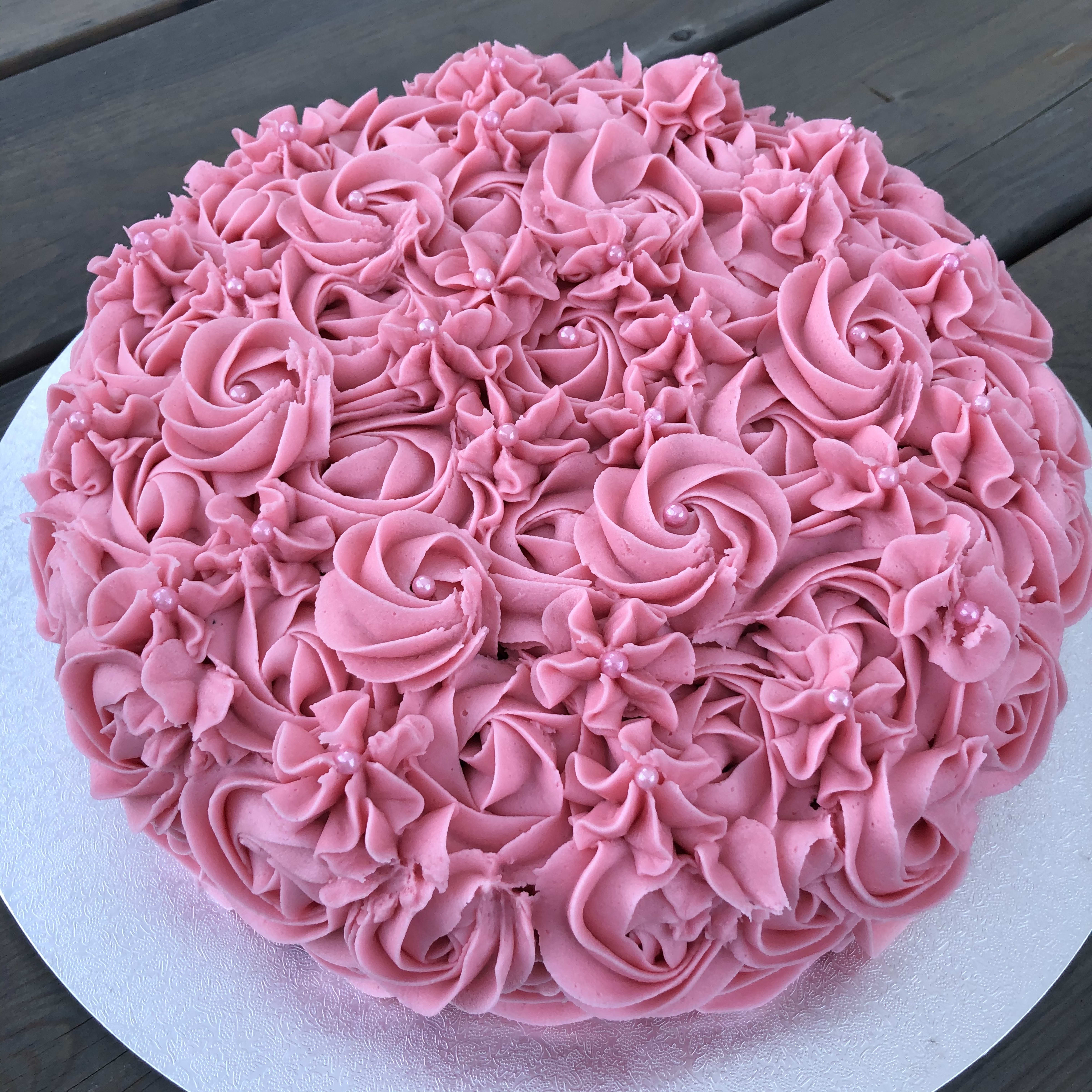 <i>Til min kake dobler jeg den rosa kremen, da det går mye til rosemønsteret.</i>