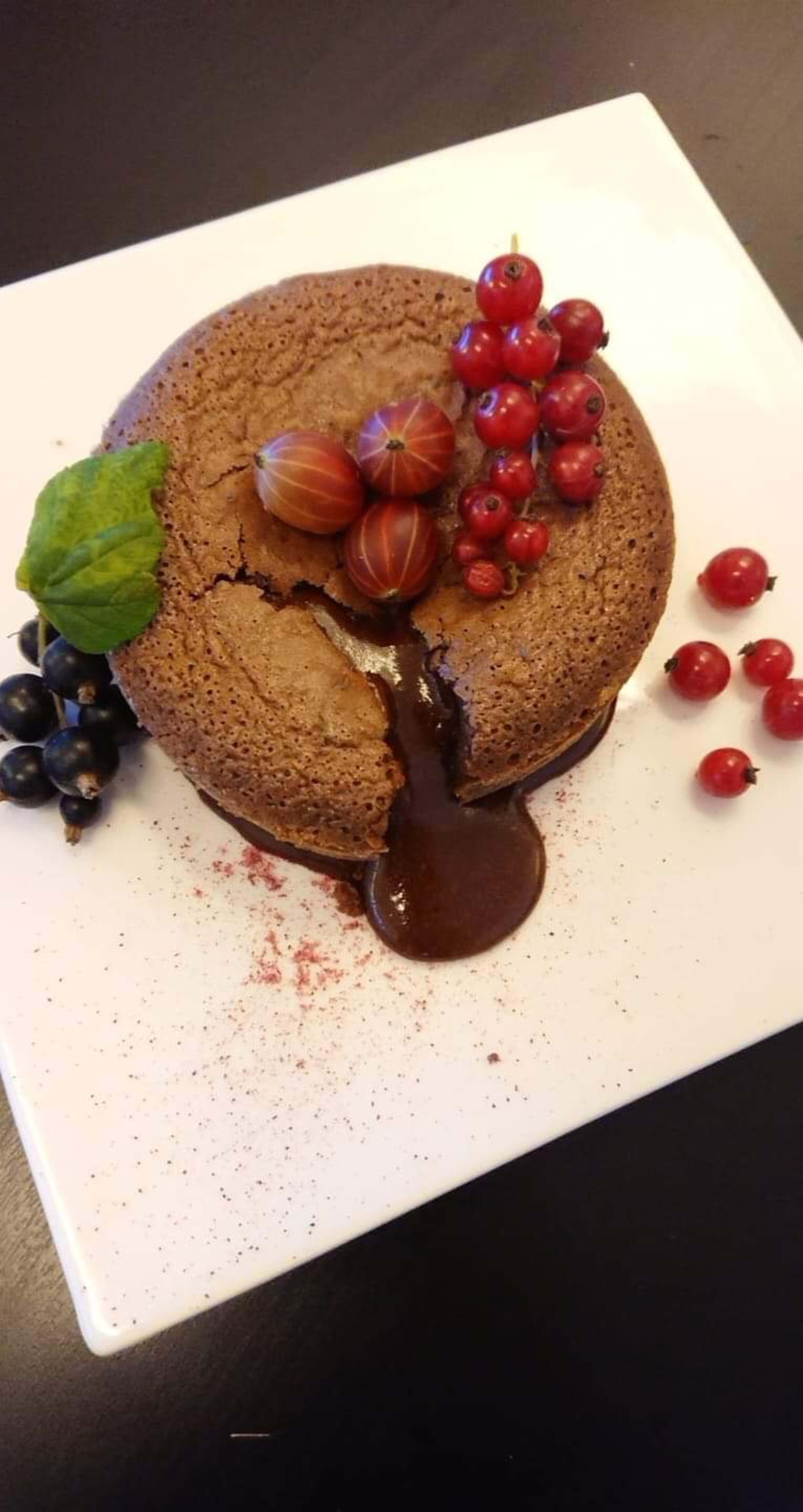 6. Stekes i 8-10 minutter på 200 grader, til den er stekt på utsiden, med flytende sjokolade i midten
