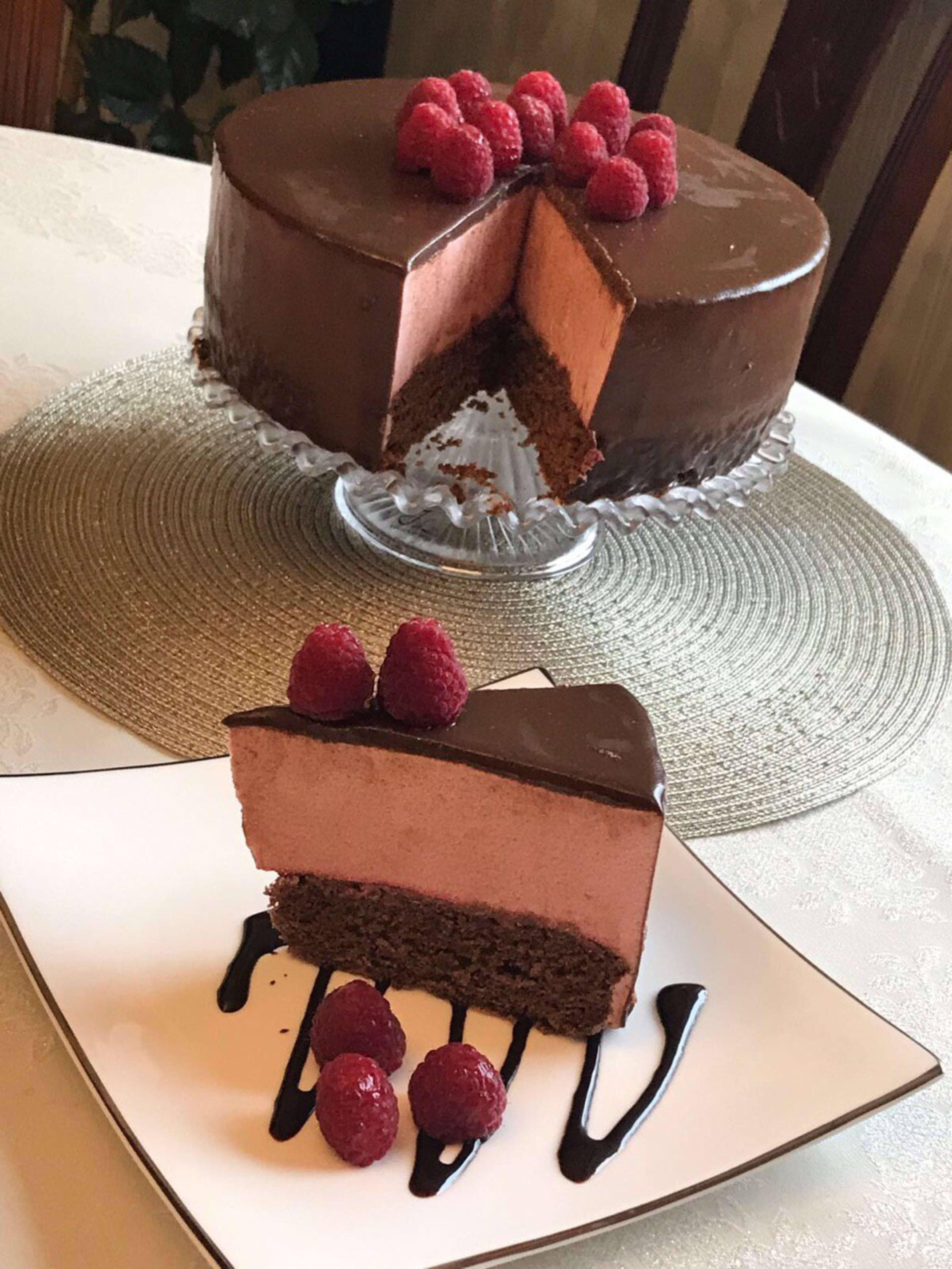 - Legg ecetatstriper i en kakering uten bunn, og legg inn sjokoladekaken i kakering.